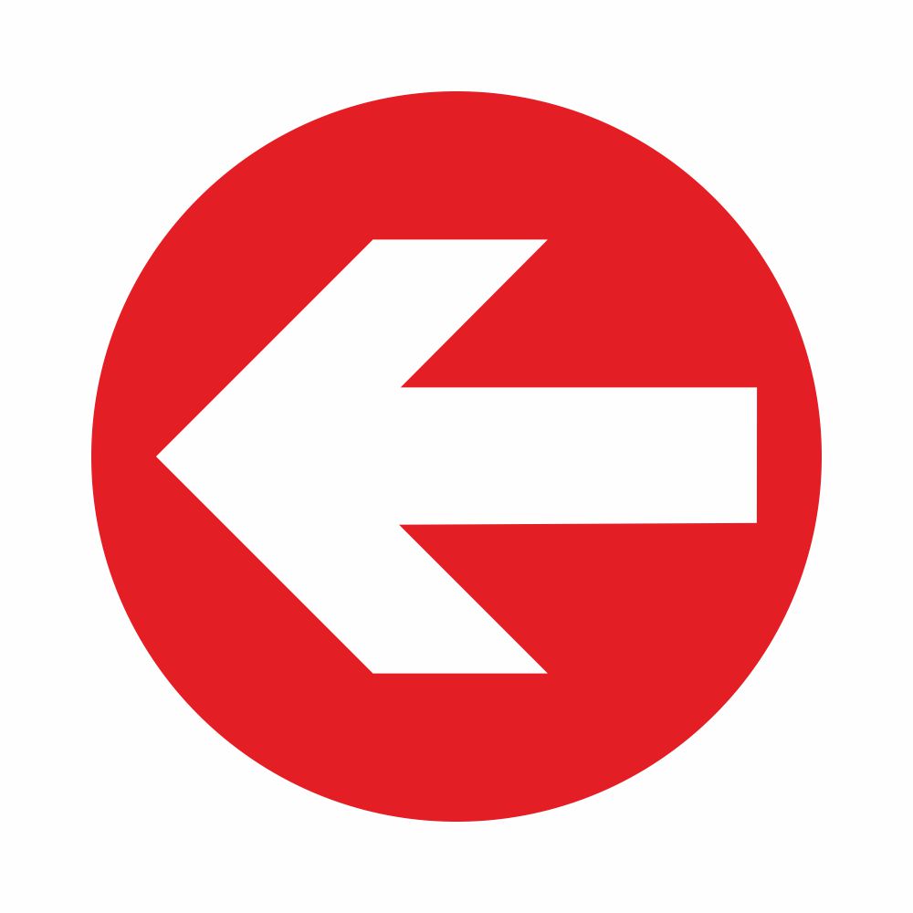 Diametro 300 mm, fondo colorato con pittogramma freccia direzionale.