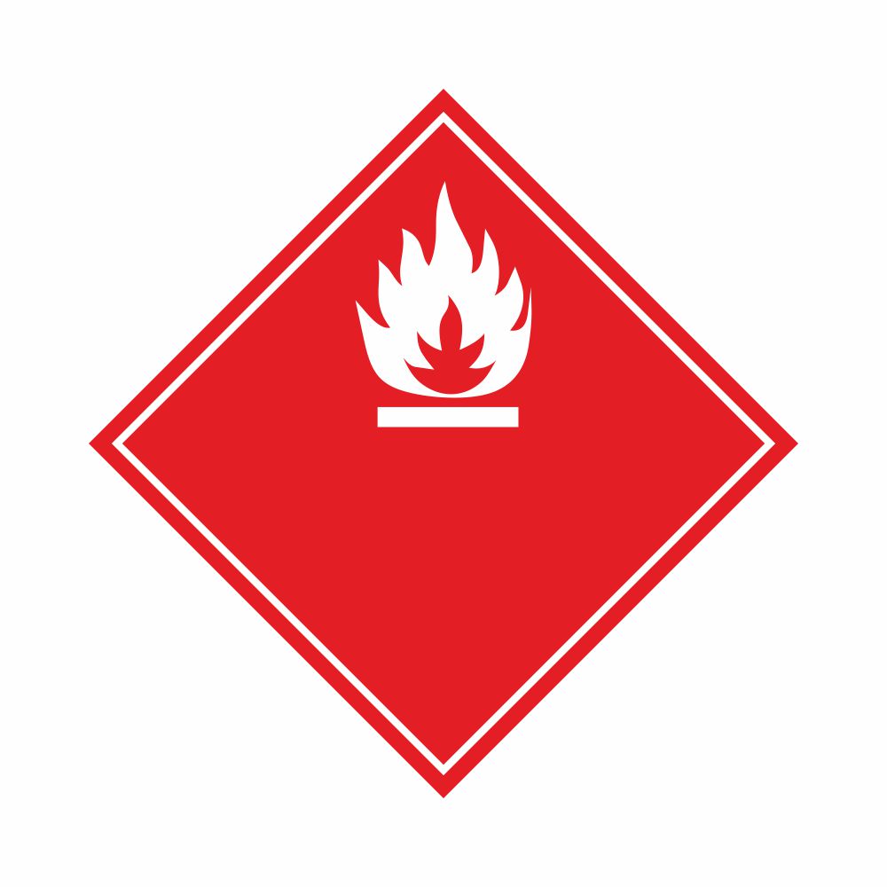 Adesivo etichettatura GHS - codice GHS02 Generalmente gas, liquidi, aerosol e solidi infiammabili; H220, H222, H223 H224, H225, H226, H228, H230, H231 Altri gruppi: Sostanze e miscele che a contatto con l’acqua sviluppano gas infiammabili; H260, H261 Solidi e liquidi autoinfiammabili o che si autodecompongono; H250 Sostanze e miscele che si autoriscaldano; H251, H252 Perossidi organici; H241, H242