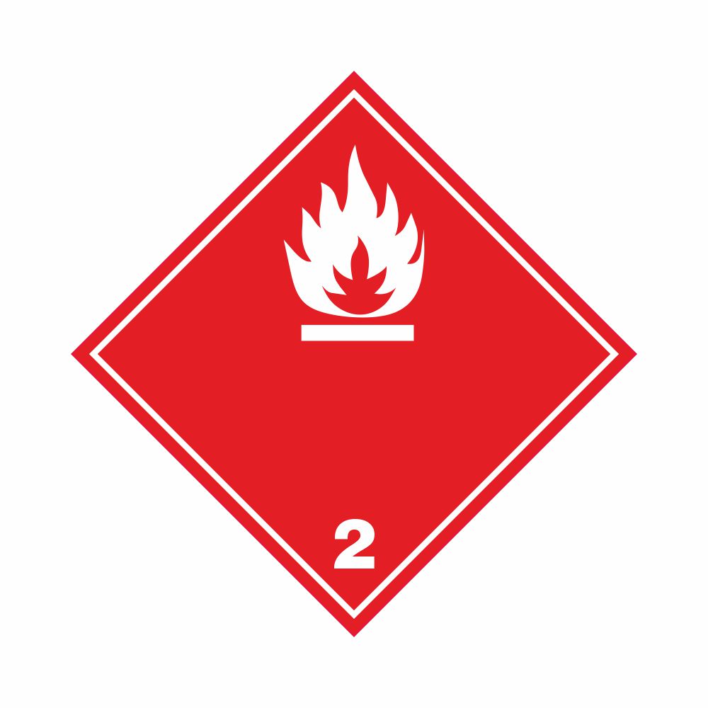 Adesivo secondo normativa ADR con simbologia e codifica trasporto infiammabili. Fondo rosso, grafica nera, possibilità di scelta della variante senza numero e con numeri 2 o 3.