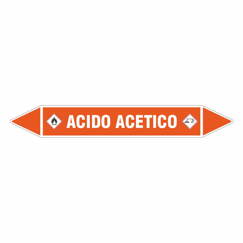 Adesivo per tubazioni con fondo bianco stampa digitale scritta ACIDO ACETICO.