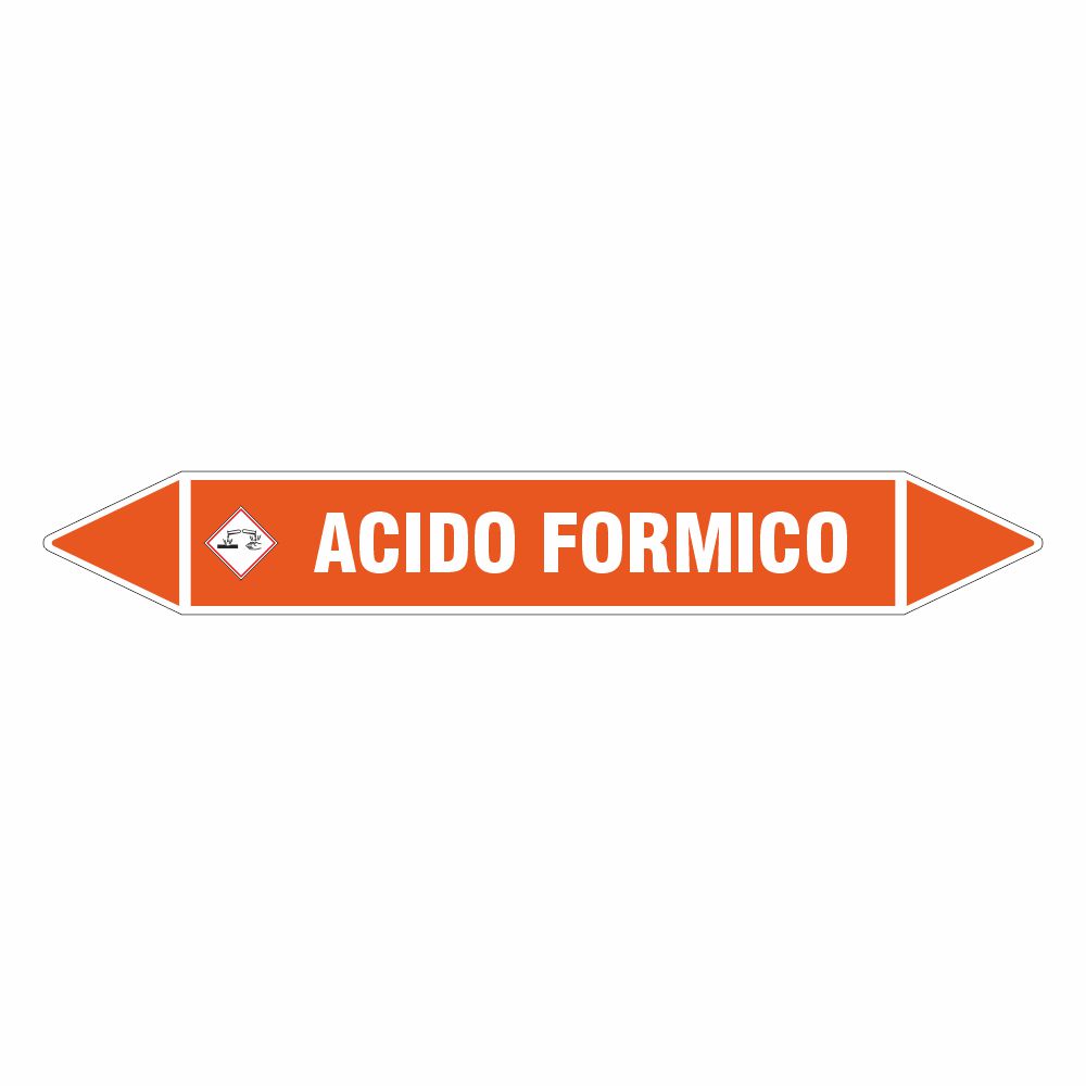 Adesivo per tubazioni con fondo bianco stampa digitale scritta ACIDO FORMICO.