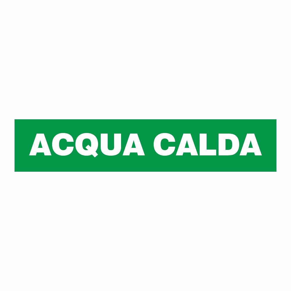 Variante ADF - Adesivo per tubazioni con fondo bianco stampa digitale scritta ACQUA CALDA. Variante A - Per tubazioni di diametro massimo 30 mm - dimensione adesivo interno 230x30 mm - dimensione incluse frecce 300x30 mm Variante B - Per tubazioni di diametro da 30 a 100 mm - dimensione adesivo interno 350x50 mm - dimensione incluse frecce 460x50mm. Variante C - Per tubazioni di diametro da 100 a 150 mm - dimensione adesivo interno 680x100 mm - dimensione incluse frecce 900x100 mm. Conforme UNI 7634. Consegna in 3/5 gg lavorativi.