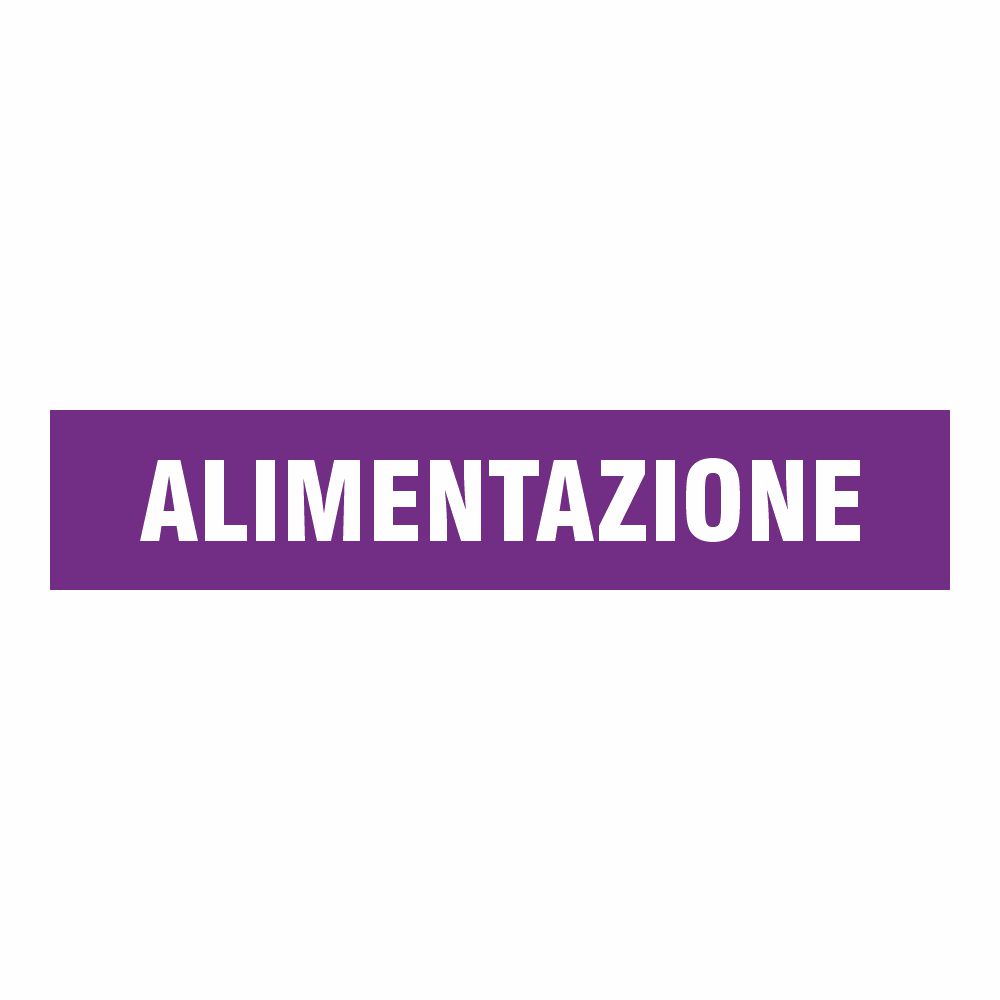 Adesivo per tubazioni con fondo bianco stampa digitale scritta ALIMENTAZIONE. Variante A - Per tubazioni di diametro massimo 30 mm - dimensione adesivo interno 230x30 mm - dimensione incluse frecce 300x30 mm Variante B - Per tubazioni di diametro da 30 a 100 mm - dimensione adesivo interno 350x50 mm - dimensione incluse frecce 460x50mm. Variante C - Per tubazioni di diametro da 100 a 150 mm - dimensione adesivo interno 680x100 mm - dimensione incluse frecce 900x100 mm. Conforme UNI 7634. Consegna in 3/5 gg lavorativi.