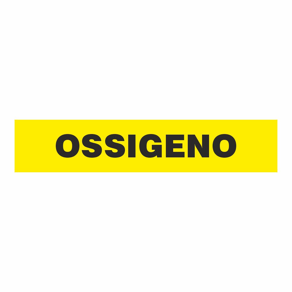 Adesivo per tubazioni con fondo bianco stampa digitale scritta OSSIGENO. Variante A - Per tubazioni di diametro massimo 30 mm - dimensione adesivo interno 230x30 mm - dimensione incluse frecce 300x30 mm Variante B - Per tubazioni di diametro da 30 a 100 mm - dimensione adesivo interno 350x50 mm - dimensione incluse frecce 460x50mm. Variante C - Per tubazioni di diametro da 100 a 150 mm - dimensione adesivo interno 680x100 mm - dimensione incluse frecce 900x100 mm. Conforme UNI 7634. Consegna in 3/5 gg lavorativi.