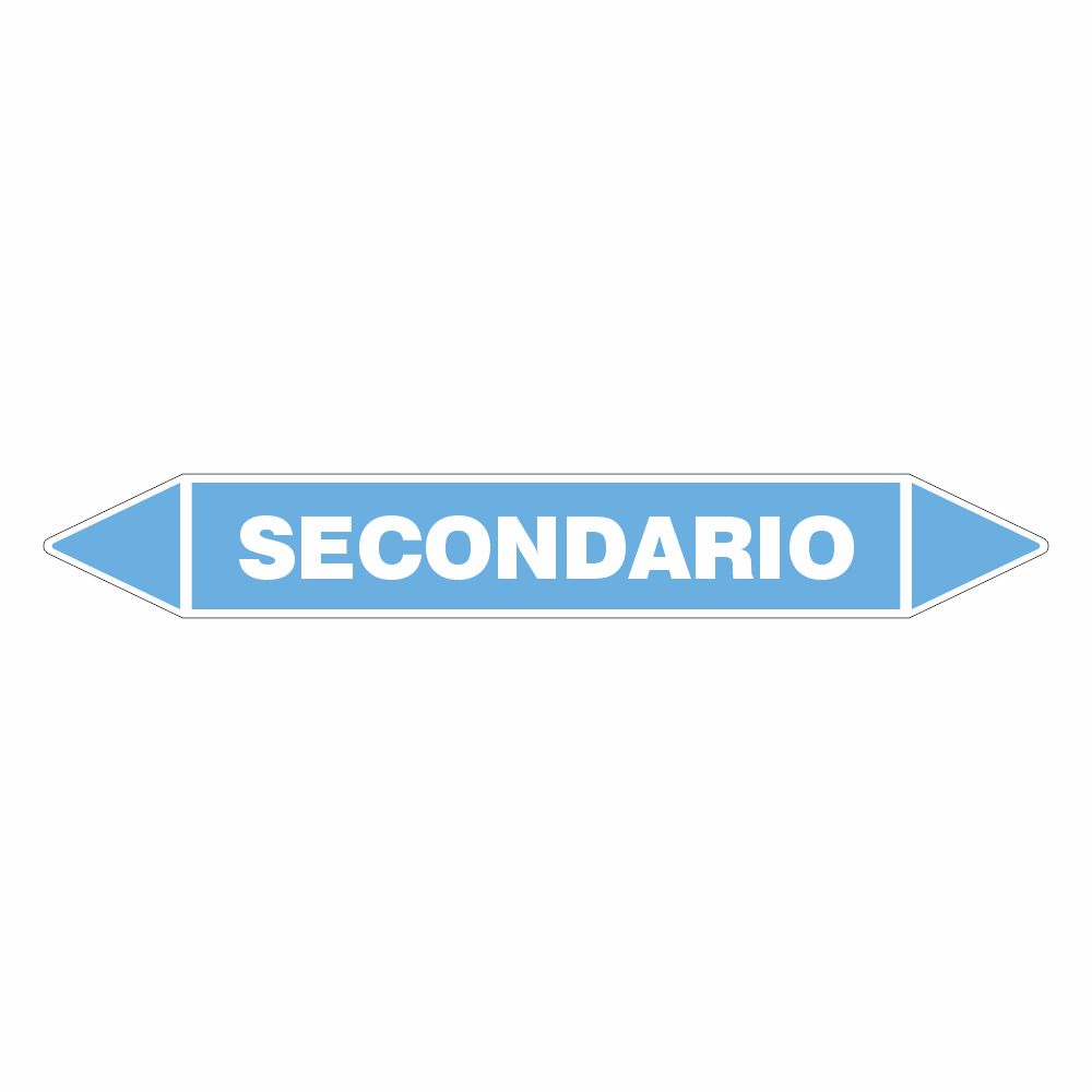 Variante ADF - Adesivo per tubazioni con fondo bianco stampa digitale scritta SECONDARIO. Variante A - Per tubazioni di diametro massimo 30 mm - dimensione adesivo interno 230x30 mm - dimensione incluse frecce 300x30 mm Variante B - Per tubazioni di diametro da 30 a 100 mm - dimensione adesivo interno 350x50 mm - dimensione incluse frecce 460x50mm. Variante C - Per tubazioni di diametro da 100 a 150 mm - dimensione adesivo interno 680x100 mm - dimensione incluse frecce 900x100 mm.