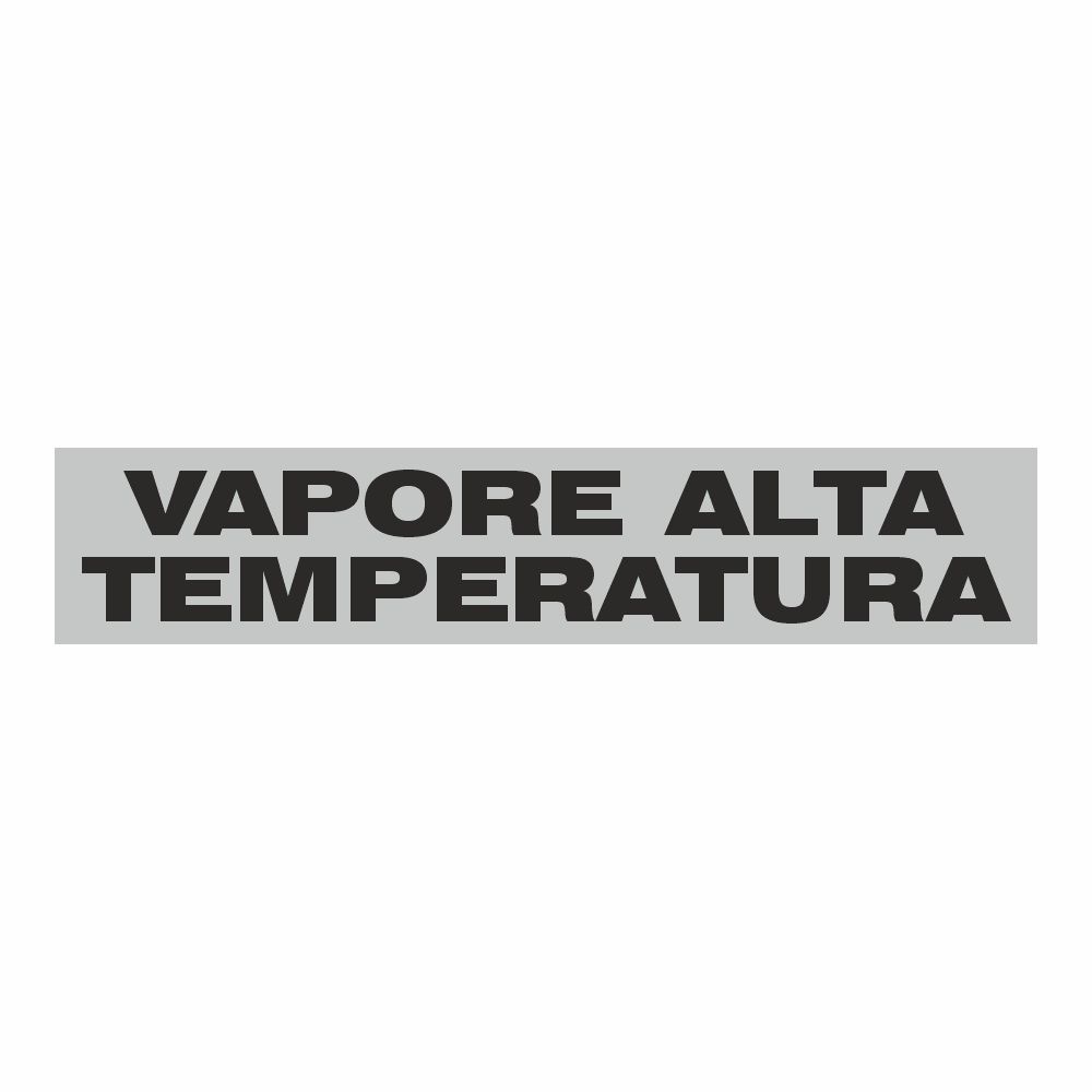 Adesivo per tubazioni con fondo ARGENTO stampa digitale scritta VAPORE ALTA TEMPERATURA. Variante A - Per tubazioni di diametro massimo 30 mm - dimensione adesivo interno 230x30 mm - dimensione incluse frecce 300x30 mm Variante B - Per tubazioni di diametro da 30 a 100 mm - dimensione adesivo interno 350x50 mm - dimensione incluse frecce 460x50mm. Variante C - Per tubazioni di diametro da 100 a 150 mm - dimensione adesivo interno 680x100 mm - dimensione incluse frecce 900x100 mm. Conforme UNI 7634. Consegna in 3/5 gg lavorativi.