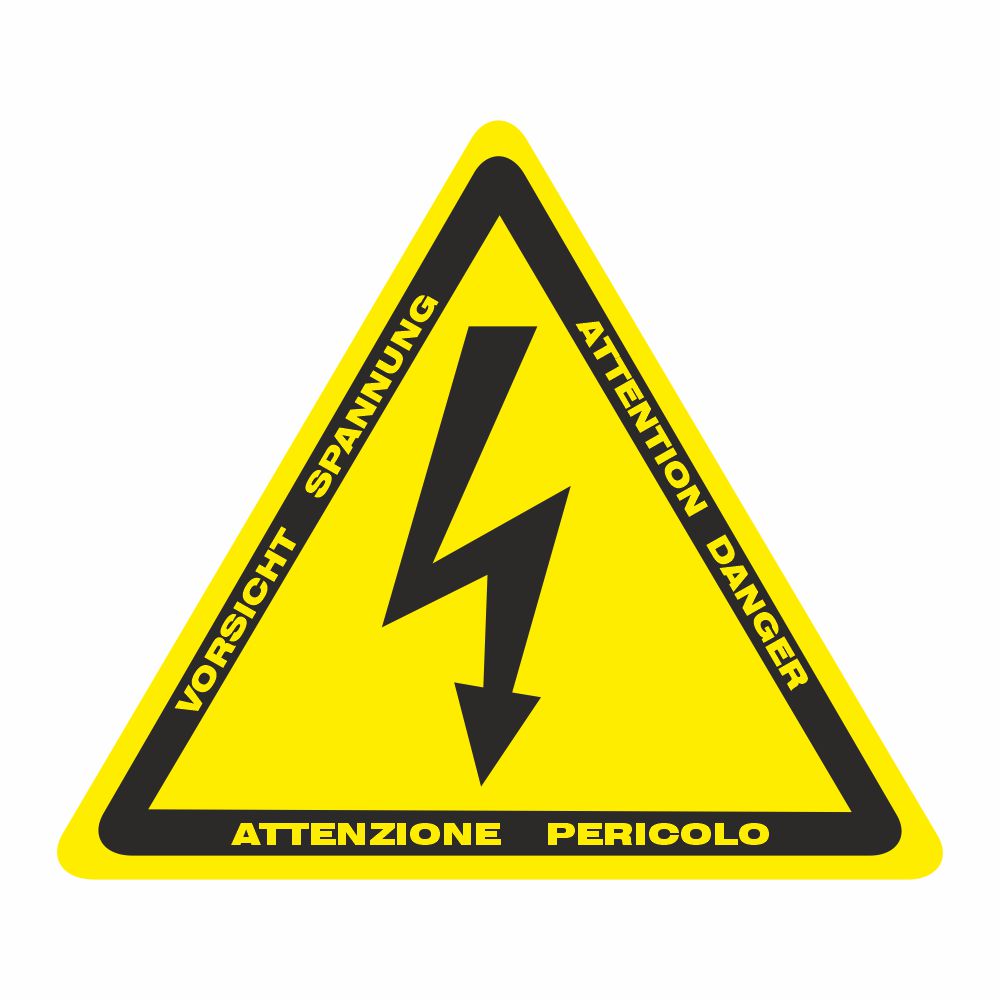 Adesivo pericolo corrente elettrica. Formato lato 75 mm.