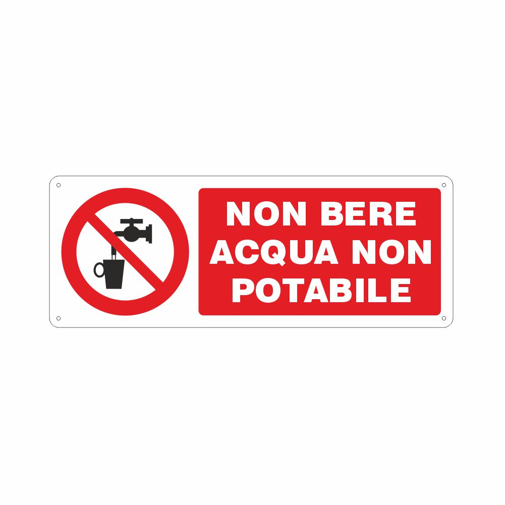 Cartello con simbolo Acqua non potabile vietato bere Base in alluminio preverniciato bianco spessore 0,5 mm Pittogramma Acqua non potabile vietato bere Stampa durevole e resistente. Angoli arrotondati. Imballo in nylon Disponibile in due formati: A con dimensione 125x125 mm; F con dimensione 270x270 mm Distanza di visibilità: Formato A 4 metri; Formato F 10 metri Conforme D.Lgs. 81-08, UNI 7543. Utilizzo: Questo cartello indica la presenza di una fonte di acqua non potabile e il divieto di bere. Metodo di adesione consigliato: collante siliconico su muro o su superficie liscia e piana Scarica qui la scheda di prodotto