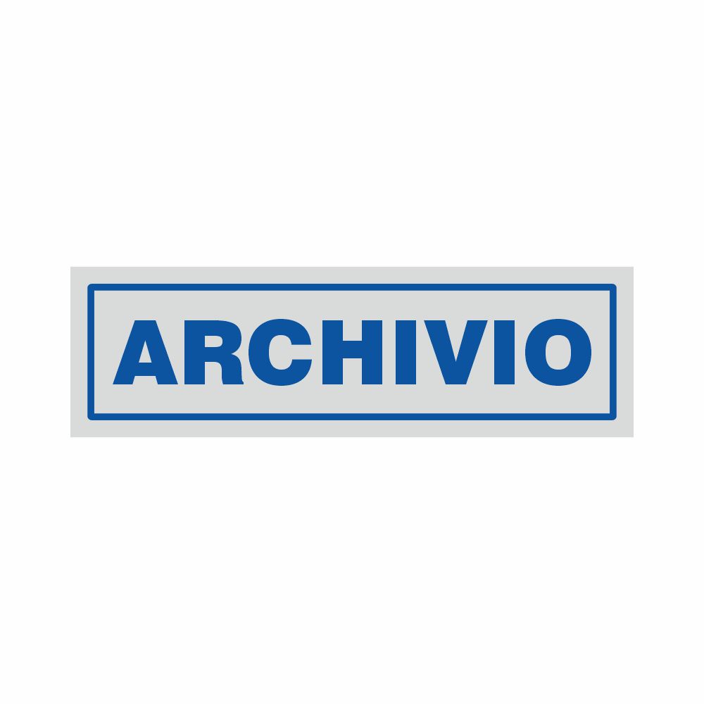 Adesivo con base argentata stampa serigrafica blu scritta Ufficio commerciale. Formato 165x50 mm
