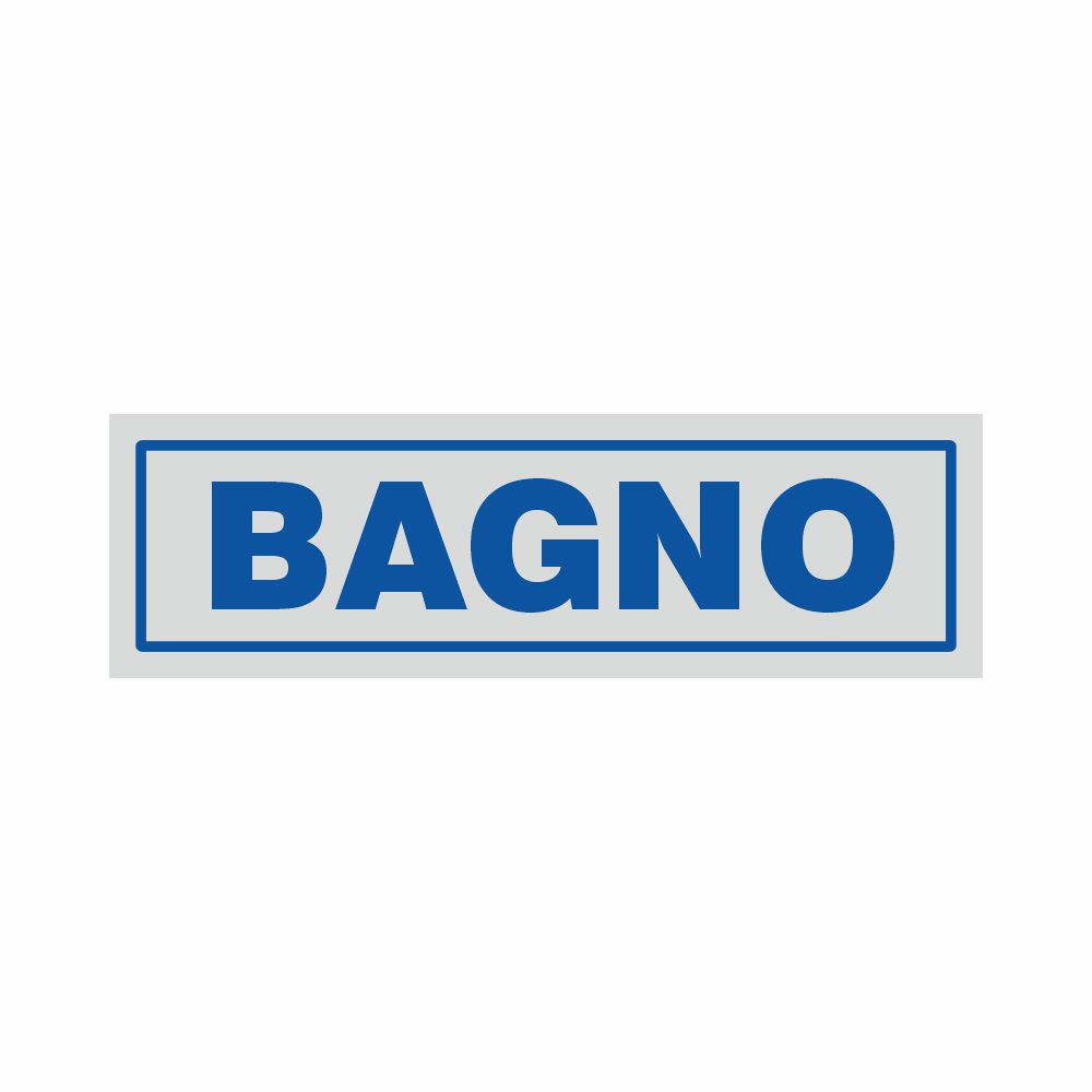 Adesivo con base argentata stampa serigrafica blu, scritta Toilette. Formato 165x50 mm