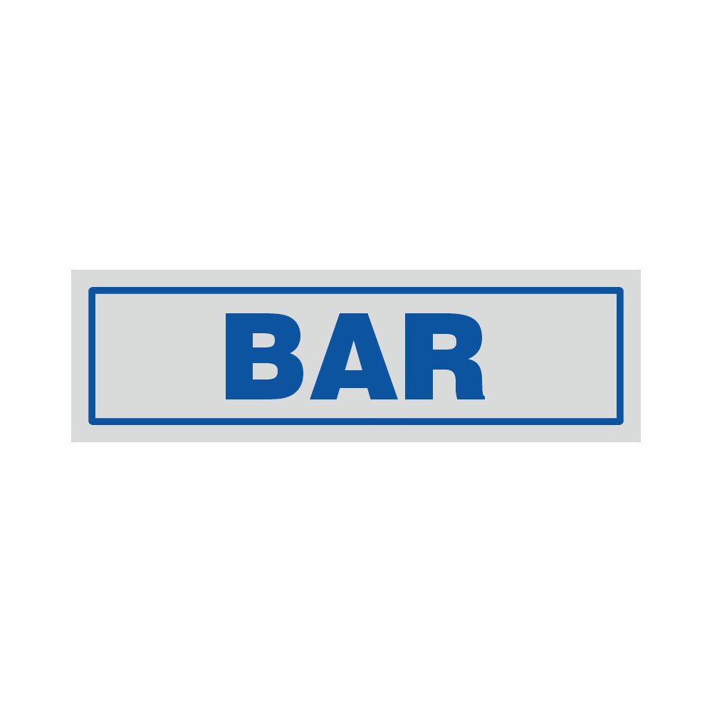 Adesivo con base argentata stampa serigrafica blu scritta guardaroba. Formato 165x50 mm