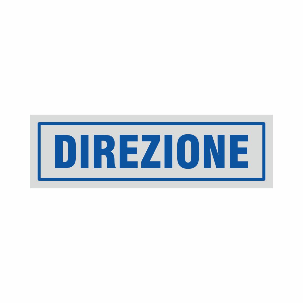 Adesivo con base argentata stampa serigrafica blu scritta Amministrazione. Formato 165x50 mm