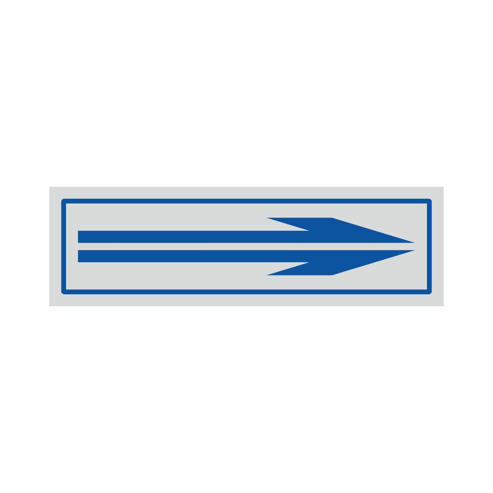 Adesivo con base argentata stampa serigrafica blu, scritta uscita. Formato 165x50 mm