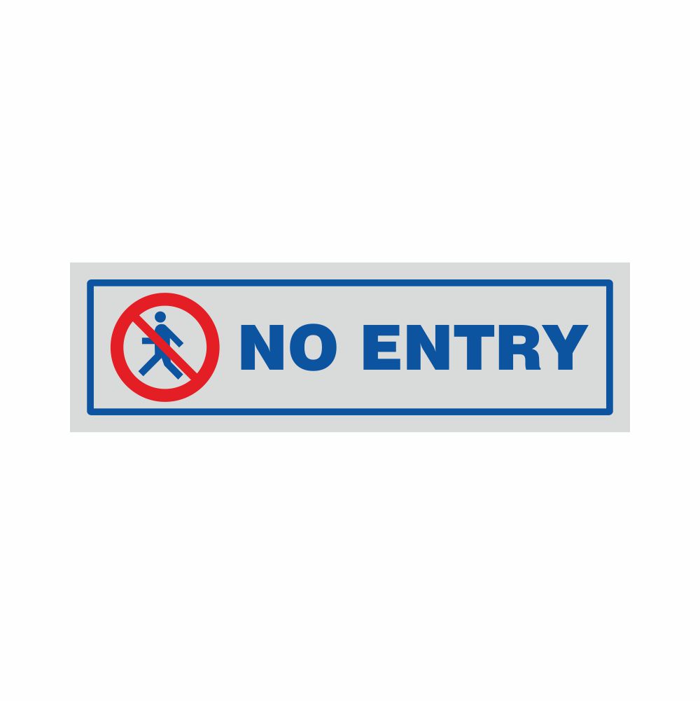 Adesivo con base argentata stampa serigrafica blu scritta Exit. Formato 165x50 mm