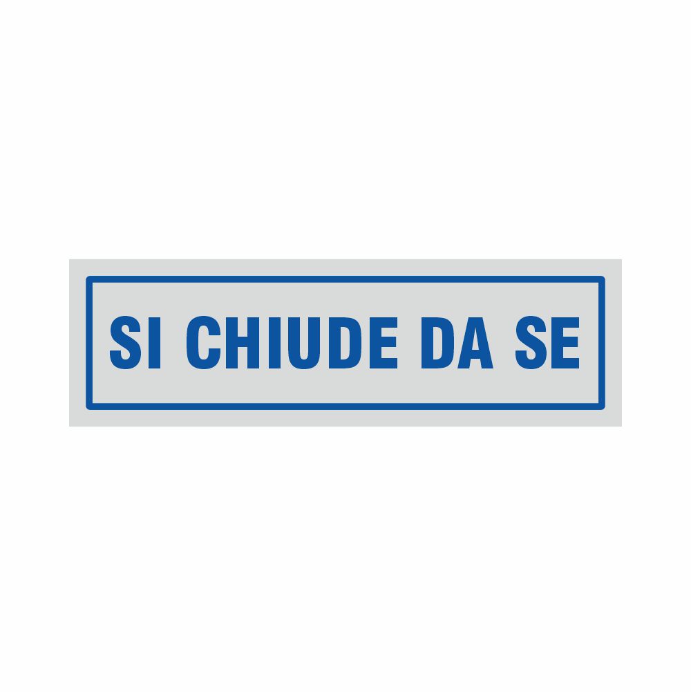 Adesivo con base argentata stampa serigrafica blu scritta Porta chiusa. Formato 165x50 mm