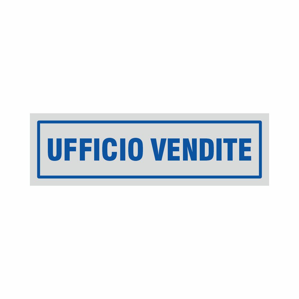 Adesivo con base argentata stampa serigrafica blu scritta Ufficio commerciale. Formato 165x50 mm