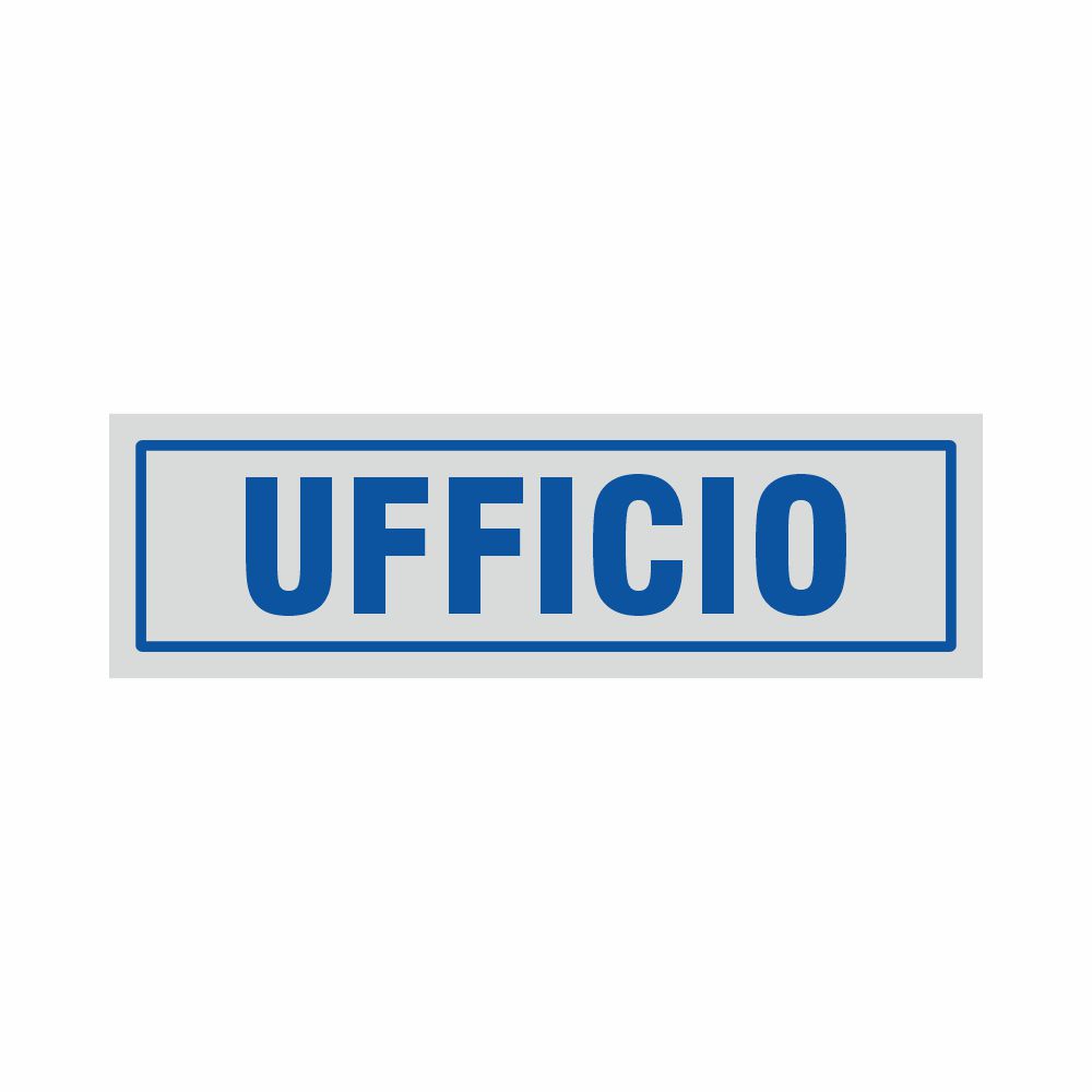 Adesivo con base argentata stampa serigrafica blu scritta Uffici. Formato 165x50 mm