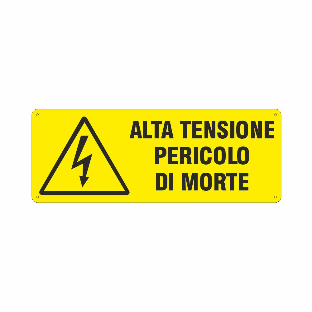 Utilizzo: il cartello si applica in prossimità di aree con passaggio di corrente ad alta tensione per avvisare del grave pericolo di shock elettrico che può portare ad arresto cardiaco e morte