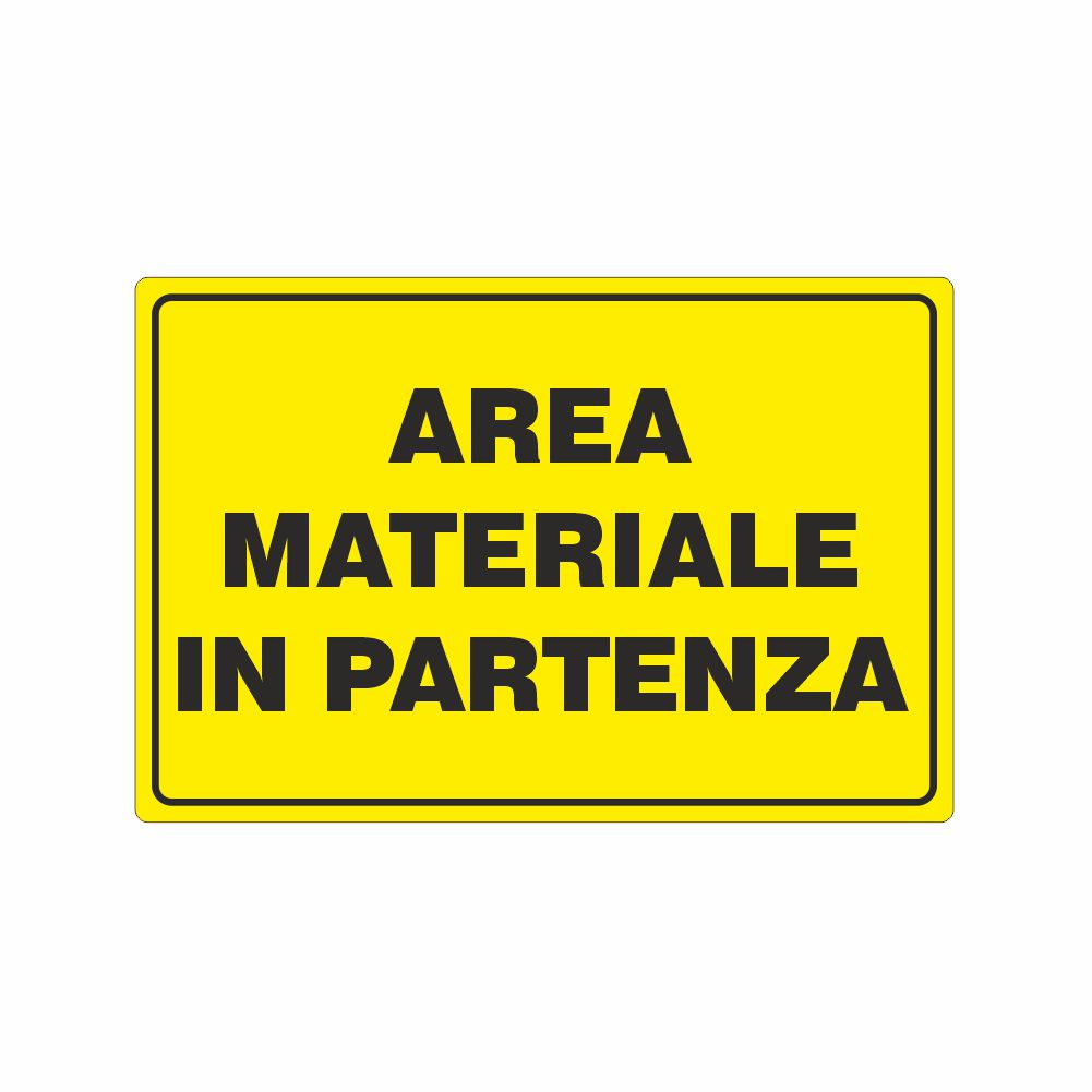 Cartello in alluminio preverniciato spessore 0,5 mm, decorazione in pvc scritta Area materiale din arrivo. Possibilità di scelta del colore della base e della scritta. Conforme D.Lgs. 81-08, UNI 7543.