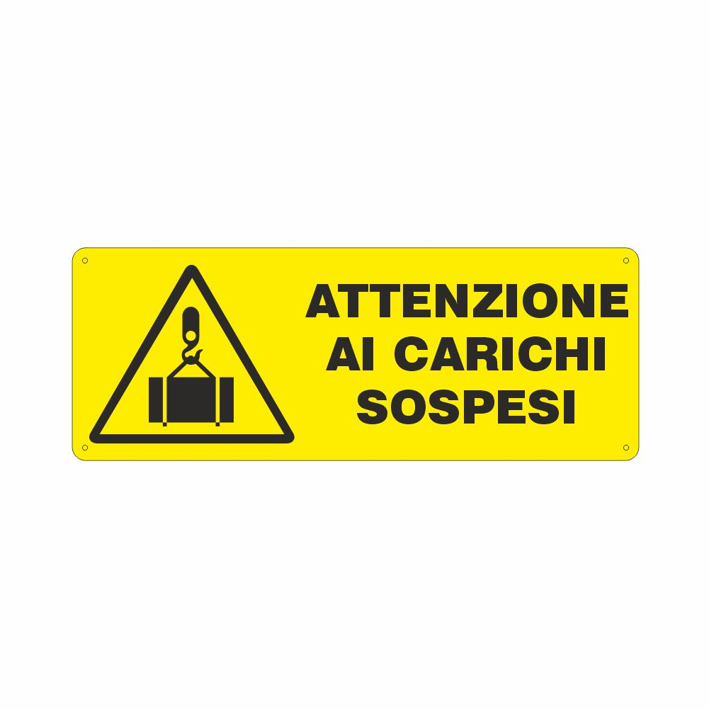 Cartello Attenzione ai carichi sospesi con carroponte in movimento Cartello in alluminio preverniciato giallo spessore 0,5 mm Attenzione ai carichi sospesi con carroponte in movimento Corrispondente pittogramma UNI EN ISO 7010: Warning sign W015,Overhead load warning Stampa durevole e resistente. Angoli arrotondati. Imballo in nylon Dimensione 333x125 mm. Distanza di visibilità 3,5 metri Conforme D.Lgs. 81-08, UNI 7543, UNI EN ISO 7010. Utilizzo: il segnale si applica in prossimità dei carroponti per avvisare del pericolo derivato da carichi sospesi e dal movimento del carroponte nello spostamento del carico Metodo di adesione consigliato: collante siliconico su muro o su superficie liscia e piana