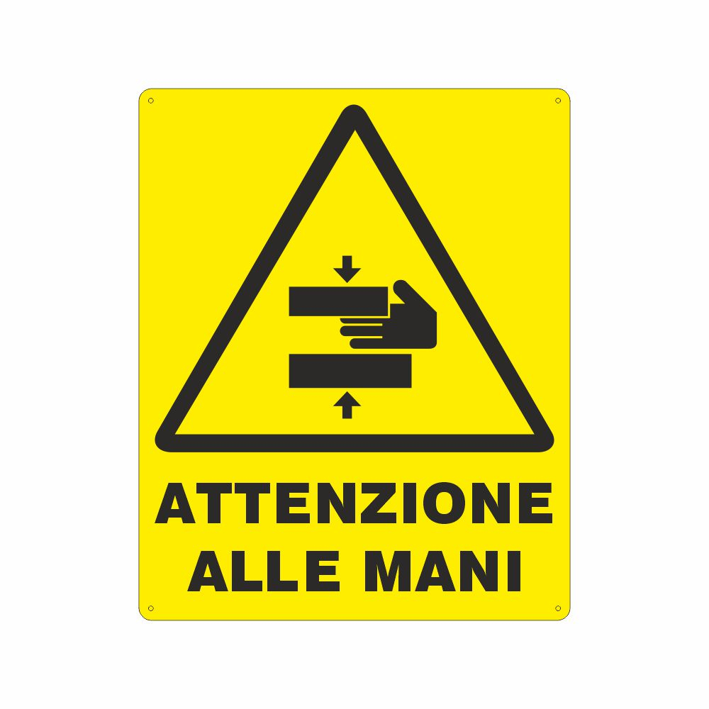 Utilizzo: il segnale si applica sopra le attrezzature o i macchinari dove sussiste il rischio di schiacciamento o infortunio alle mani