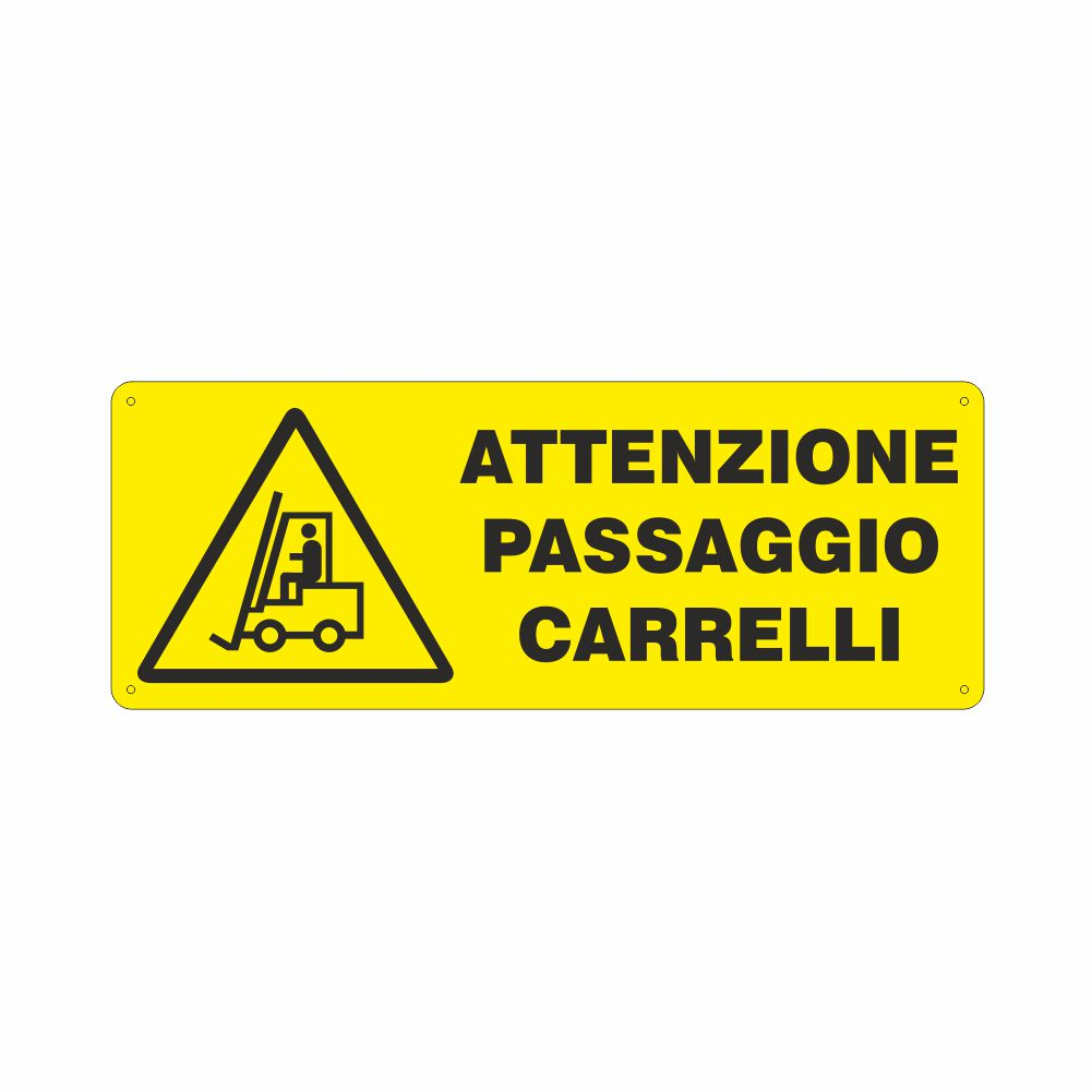 Utilizzo: applicare questo cartello nelle zone di passaggio di carrelli elevatori per avvisare del rischio di collisione e scongiurare eventuali incidenti o infortuni sul lavoro