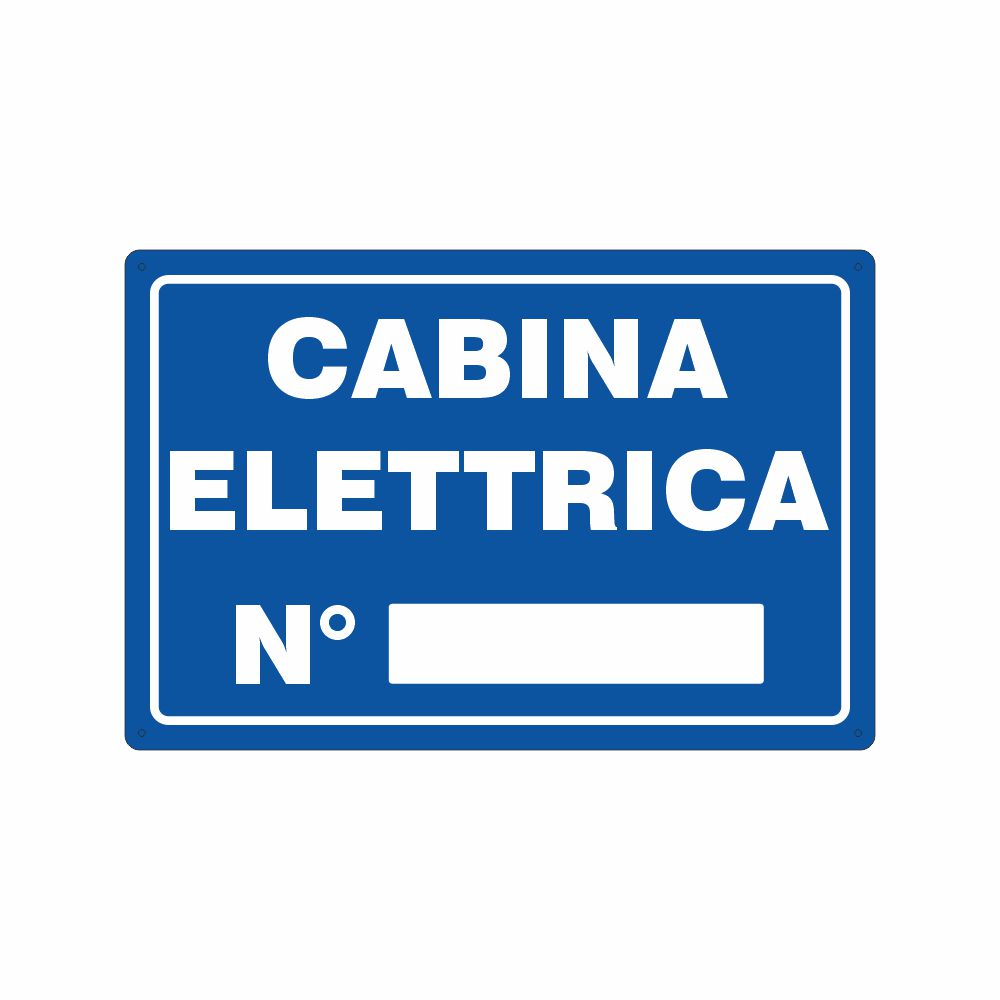Cartello in alluminio preverniciato blu spessore 0,5 mm, stampa serigrafica scritta Cabina elettrica. Formato 300x200 mm. Conforme D.Lgs. 81-08, UNI 7543.