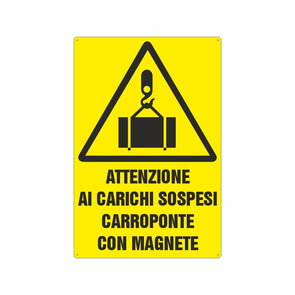 Cartello Attenzione ai carichi sospesi carroponte con magnete