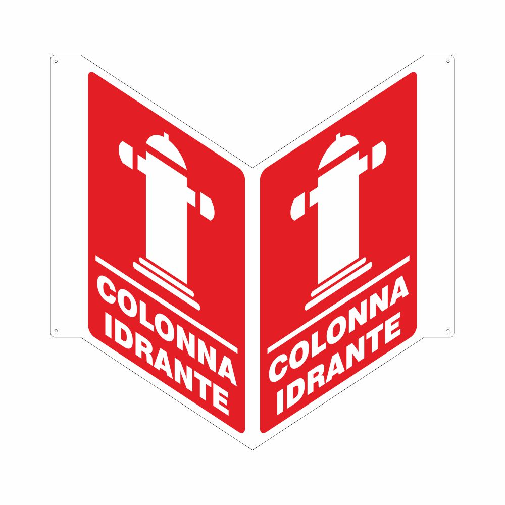 Cartello in alluminio preverniciato bianco (variante F) o rosso (variante B) spessore 0,5 mm, bifacciale piegato, stampa serigrafica pittogramma e scritta Colonna idrante.