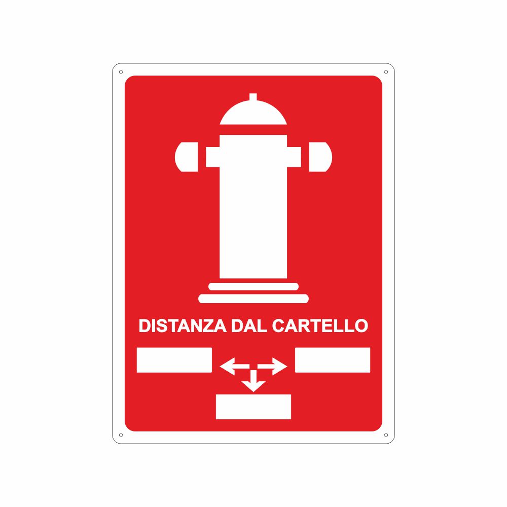 Cartello in alluminio preverniciato bianco (formato F) o rosso (formato B), spessore 0,5 mm, stampa serigrafica pittogramma e scritta Idrante sottosuolo con spazio per inserire la distanza dal cartello. Conforme D.Lgs. 81-08, UNI 7543.