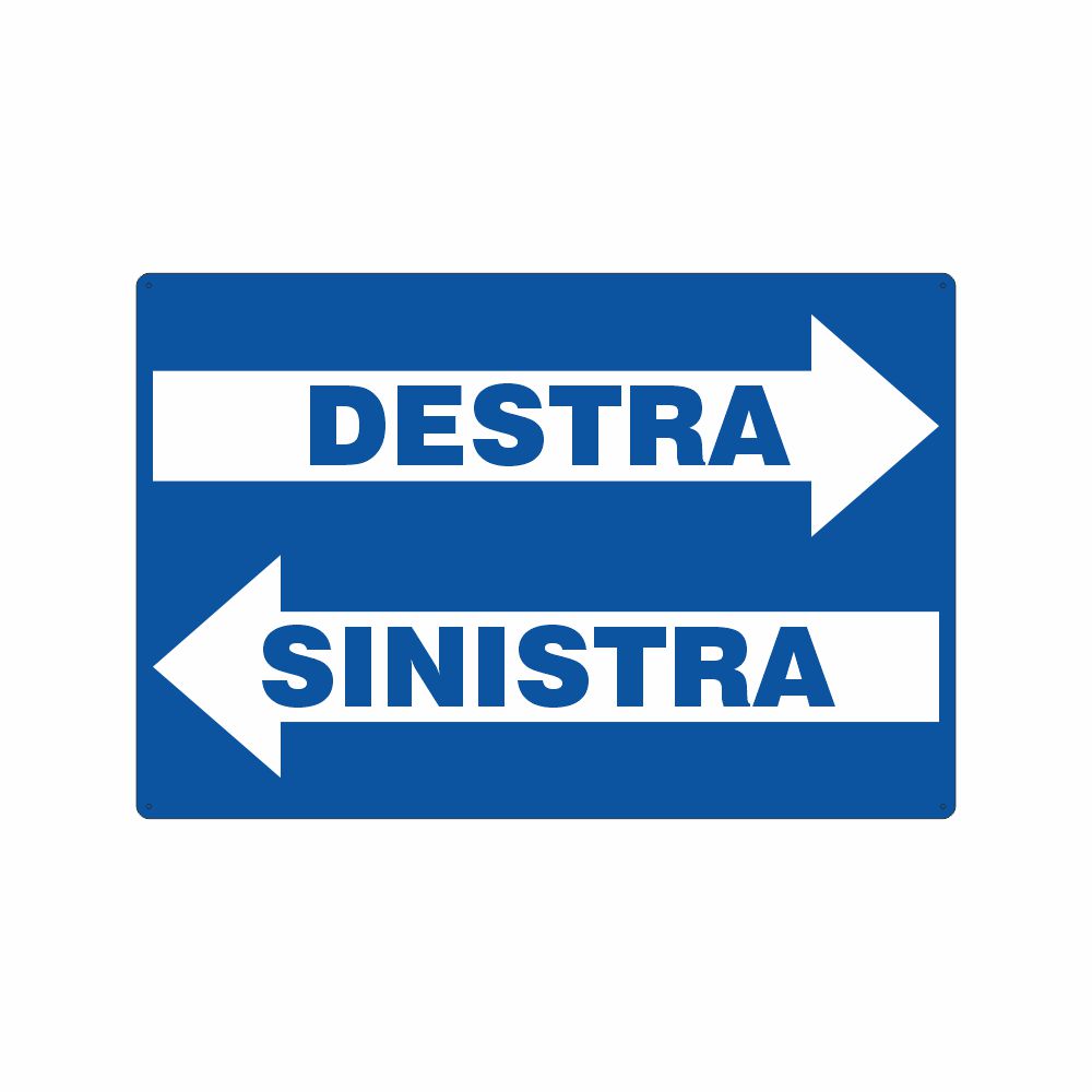 Cartello in alluminio preverniciato blu spessore 0,5 mm, stampa serigrafica con indicate direzioni avanti indietro. Formato 500x333 mm. Conforme D.Lgs. 81-08, UNI 7543.