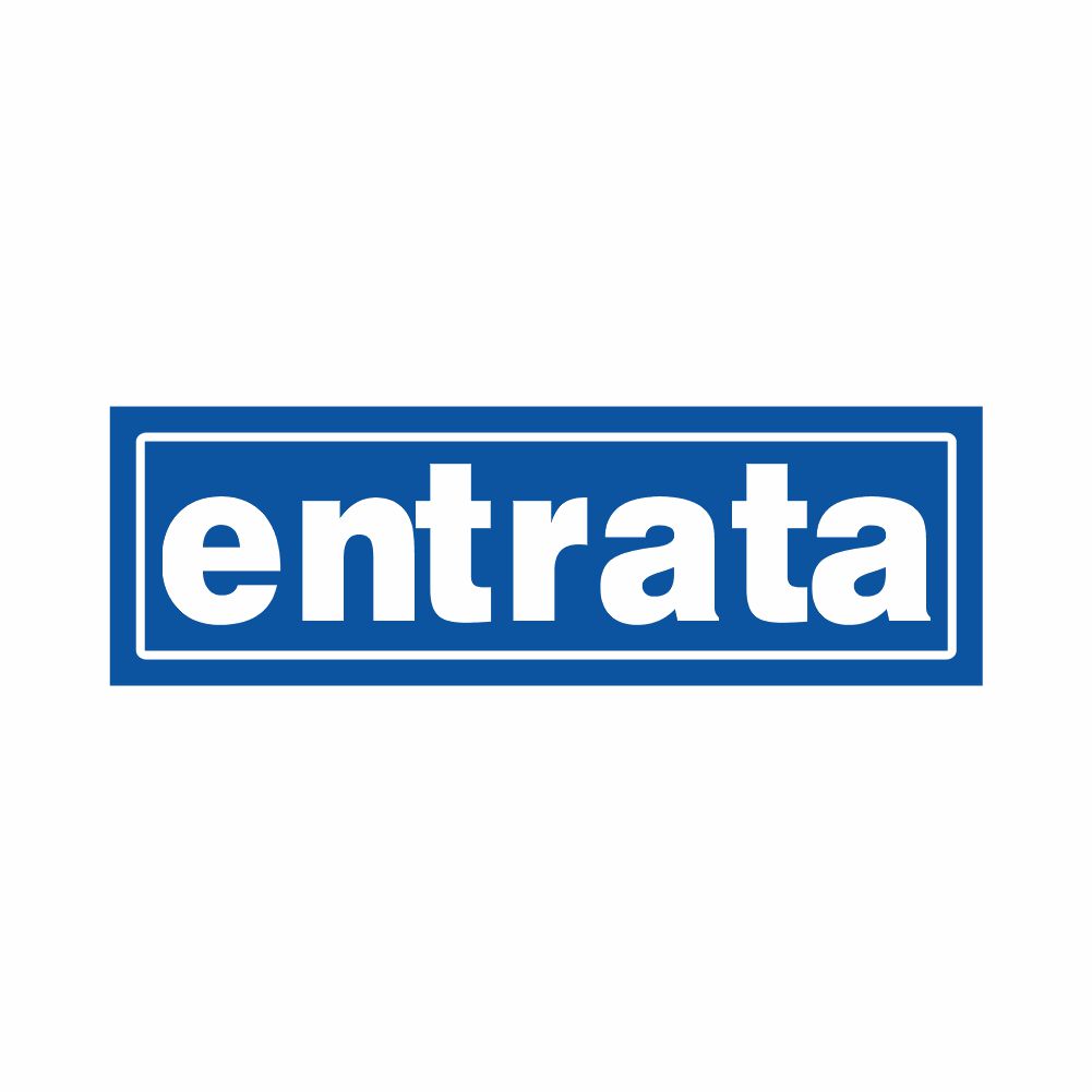 Adesivo con base argentata stampa serigrafica blu, scritta Entrata. Formato 165x50 mm