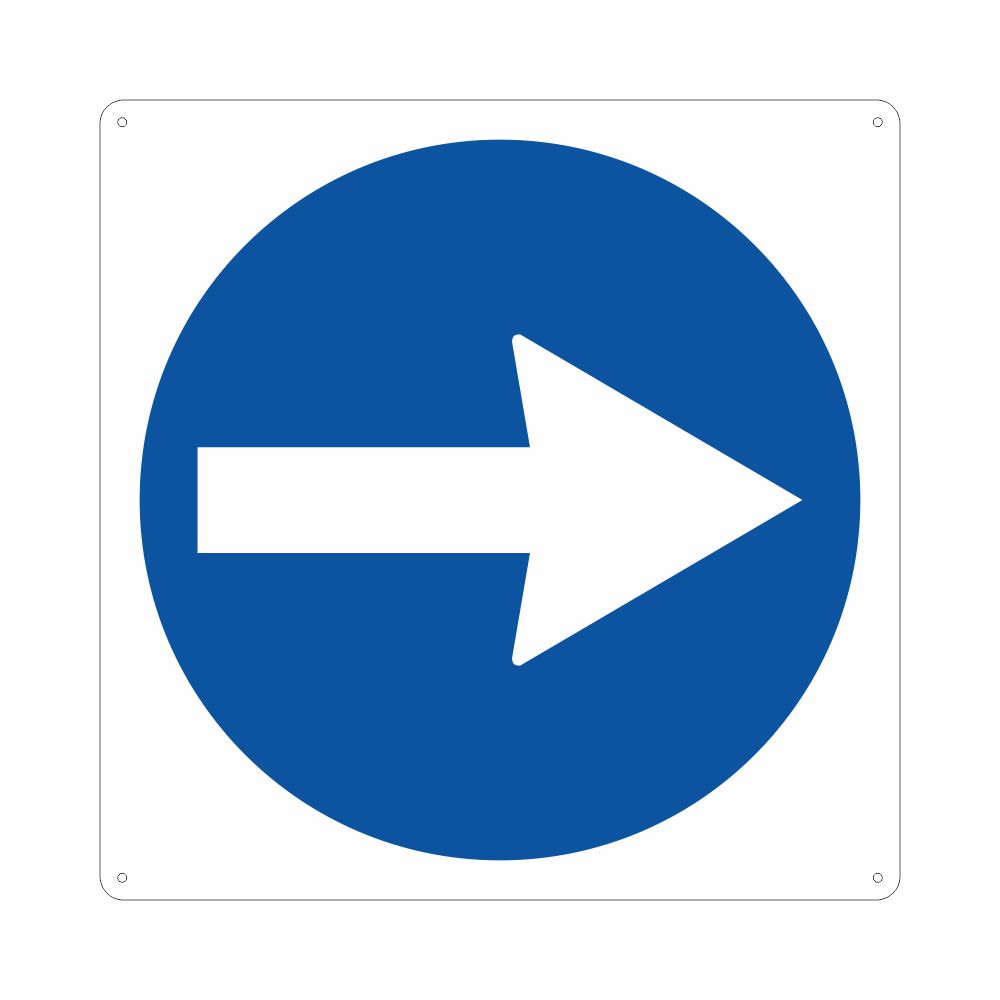 Cartello in alluminio preverniciato bianco spessore 0,5 mm, stampa serigrafica pittogramma freccia direzione obbligatoria stradale.
