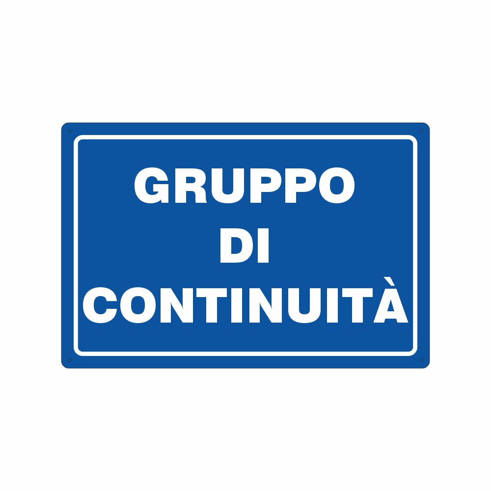 Cartello in alluminio preverniciato blu spessore 0,5 mm, stampa serigrafica scritta gruppo elettrogeno. Formato 300x200 mm. Conforme D.Lgs. 81-08, UNI 7543.