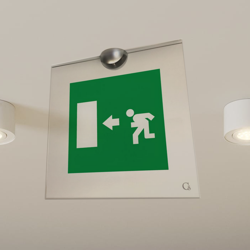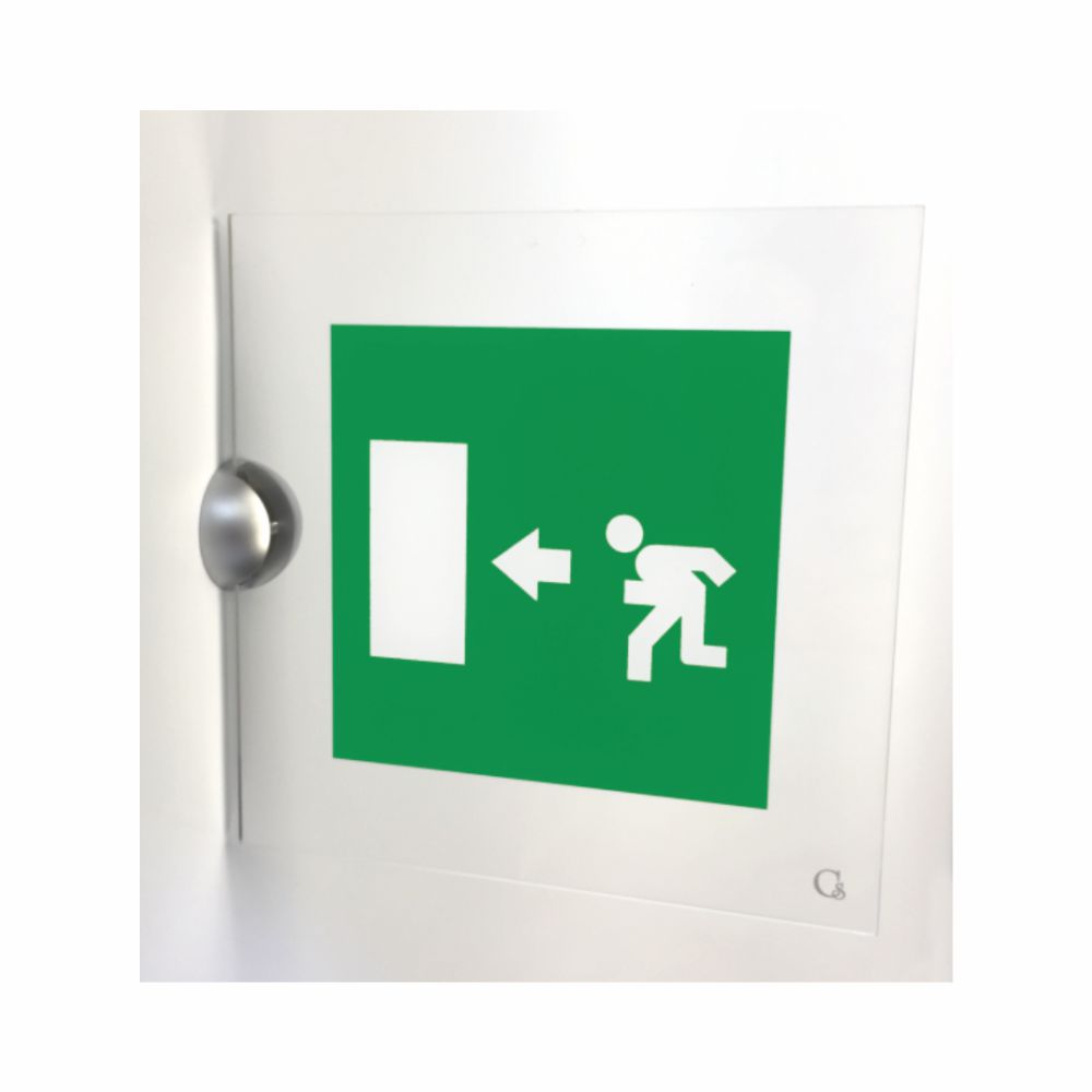 La targa a bandiera bifacciale uscita di emergenza della Linea Cruise Avantgarde rappresenta l'eccellenza nella segnaletica di sicurezza in plexiglass. Realizzato con lavorazione artigianale di precisione, utilizzando materiale acrilico trasparente o satinato con spessore di 3 mm che garantisce robustezza e durabilità nel tempo.