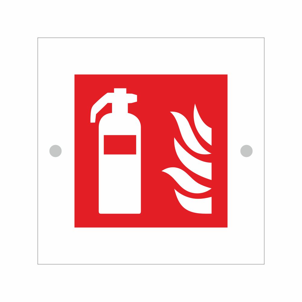 Cartello serie Avantgarde, in plexiglass trasparente o satinato, spessore 3 mm, con pittogramma Estintore conforme UNI EN ISO 7010.