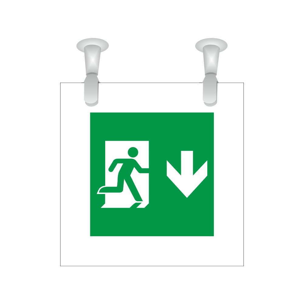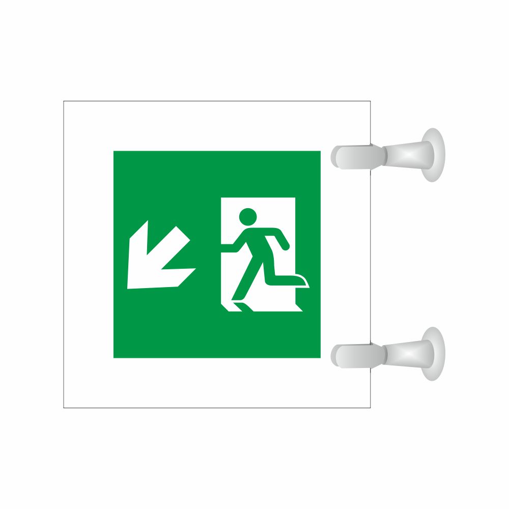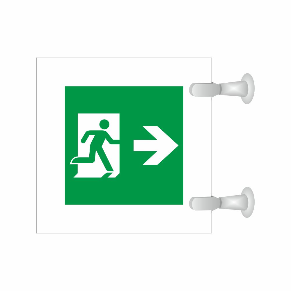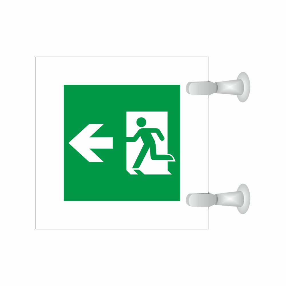 Cartello serie Plexline Bifacciale, in plexiglass trasparente o satinato, spessore 3 mm, con pittogramma Uscita di emergenza conforme UNI EN ISO 7010.