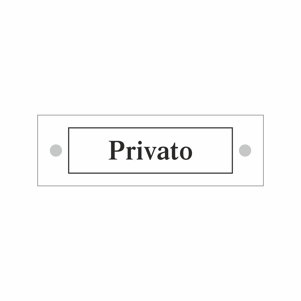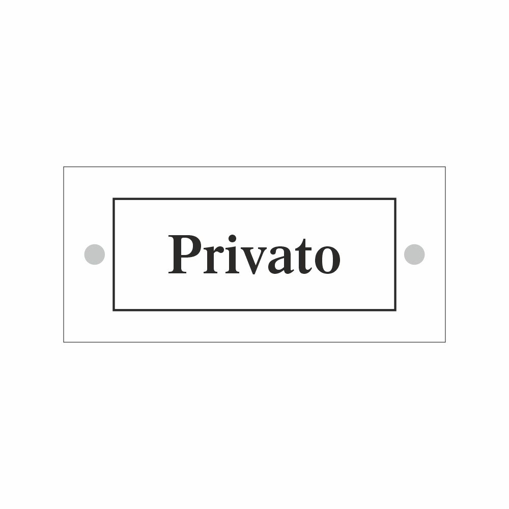 Cartello serie Plexline, in plexiglass trasparente o satinato, spessore 3 mm, con scritta nera Privato.