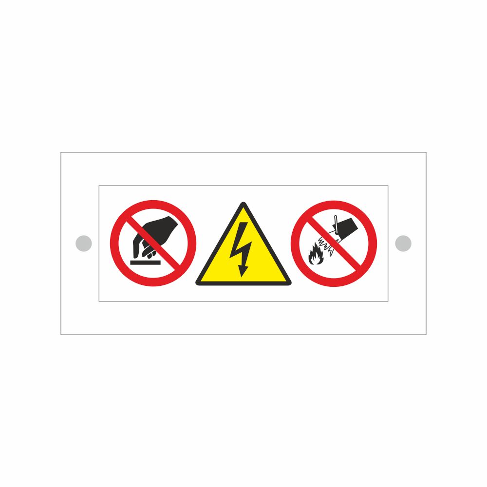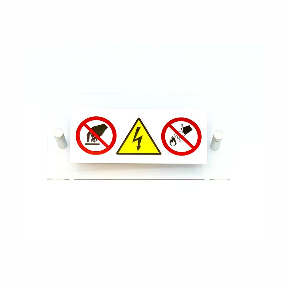 La Targa per impianti elettrici sotto tensione, con simboli non toccare, pericolo corrente, vietato usare acqua per spegnere incendi, della serie Plexline rappresenta la soluzione ideale per la segnaletica di servizi igienici in contesti professionali, commerciali e turistici. Questa targa rettangolare in plexiglass unisce funzionalità ed eleganza, offrendo massima versatilità d'installazione per uffici, studi professionali, hotel, ristoranti, bar, negozi e strutture ricettive.