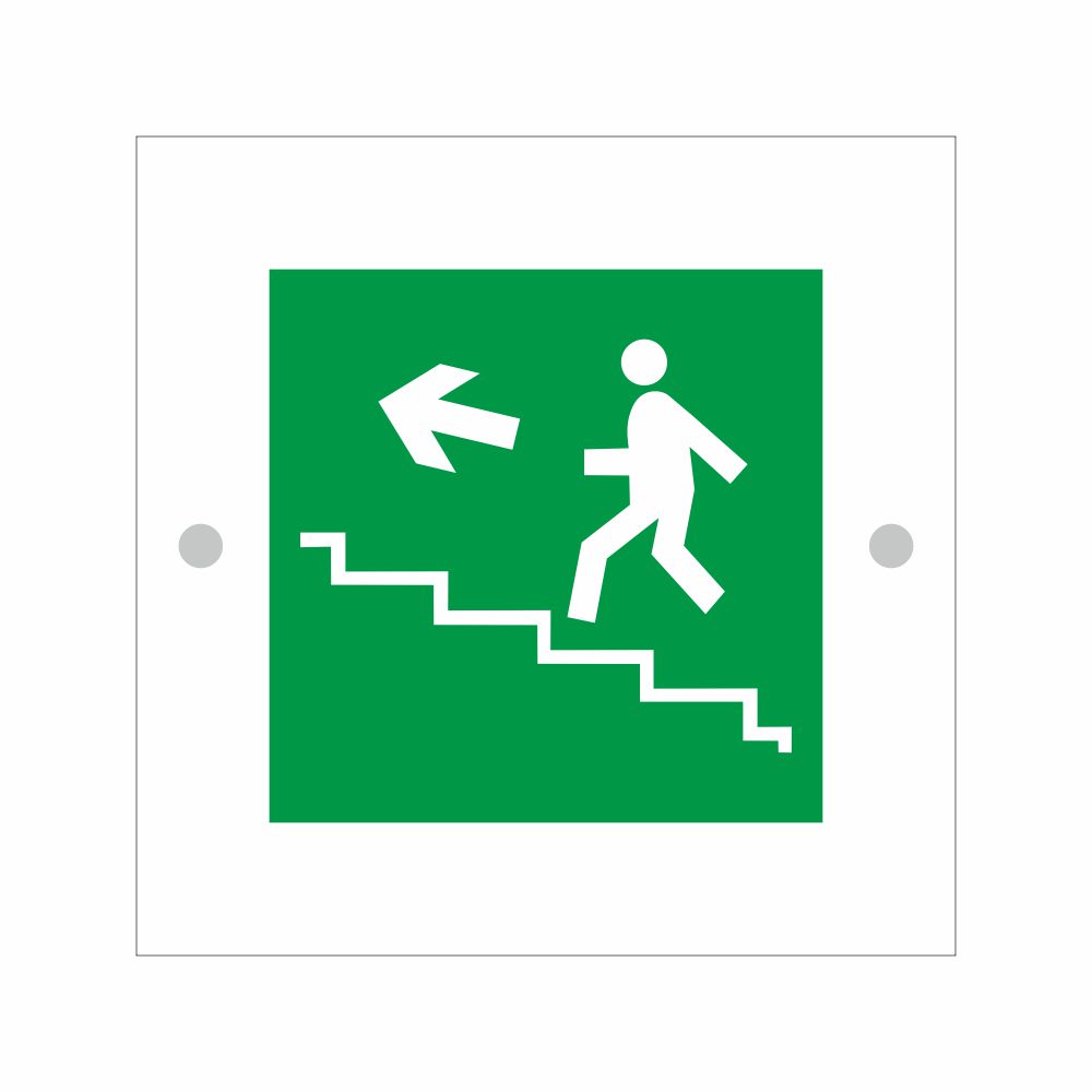 Cartello serie Avantgarde, in plexiglass trasparente o satinato, spessore 3 mm, con pittogramma scala di emergenza.