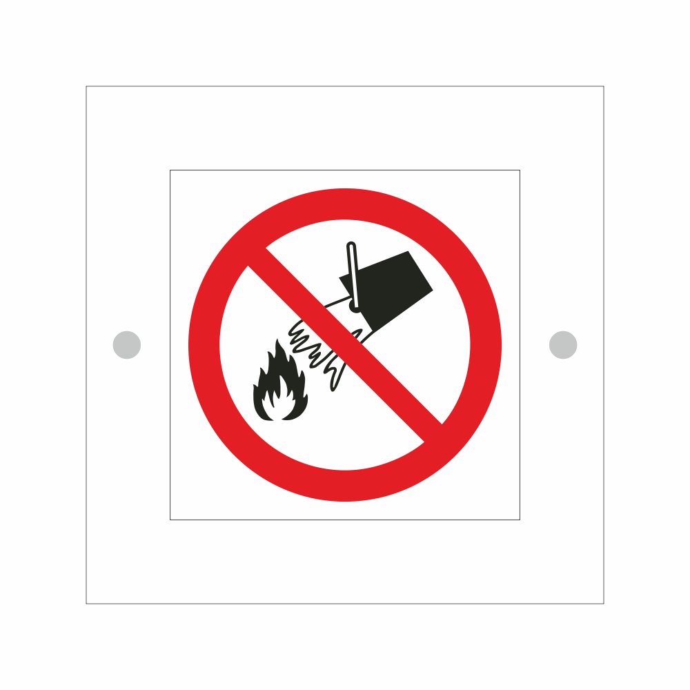 Cartello serie Plexline Economy in plexiglass trasparente spessore 2 mm, con pittogramma non usare acqua per spegnere incendi conforme UNI EN ISO 7010.