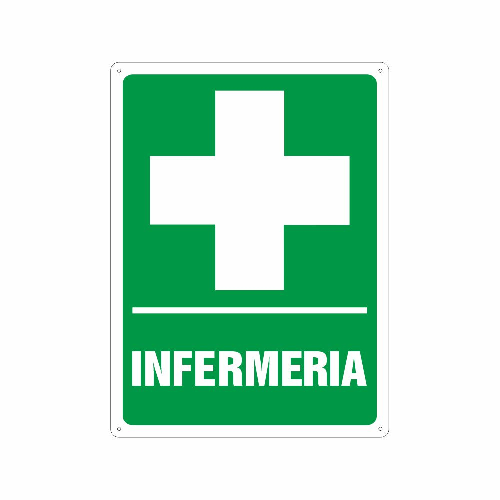 Cartello in alluminio preverniciato bianco (formati S e F) o verde (formato B), spessore 0,5 mm, stampa serigrafica pittogramma infermeria - pronto soccorso - first aid. Conforme D.Lgs. 81-08, UNI 7543, UNI EN ISO 7010. Le misure delle varianti sono espresse in mm.
