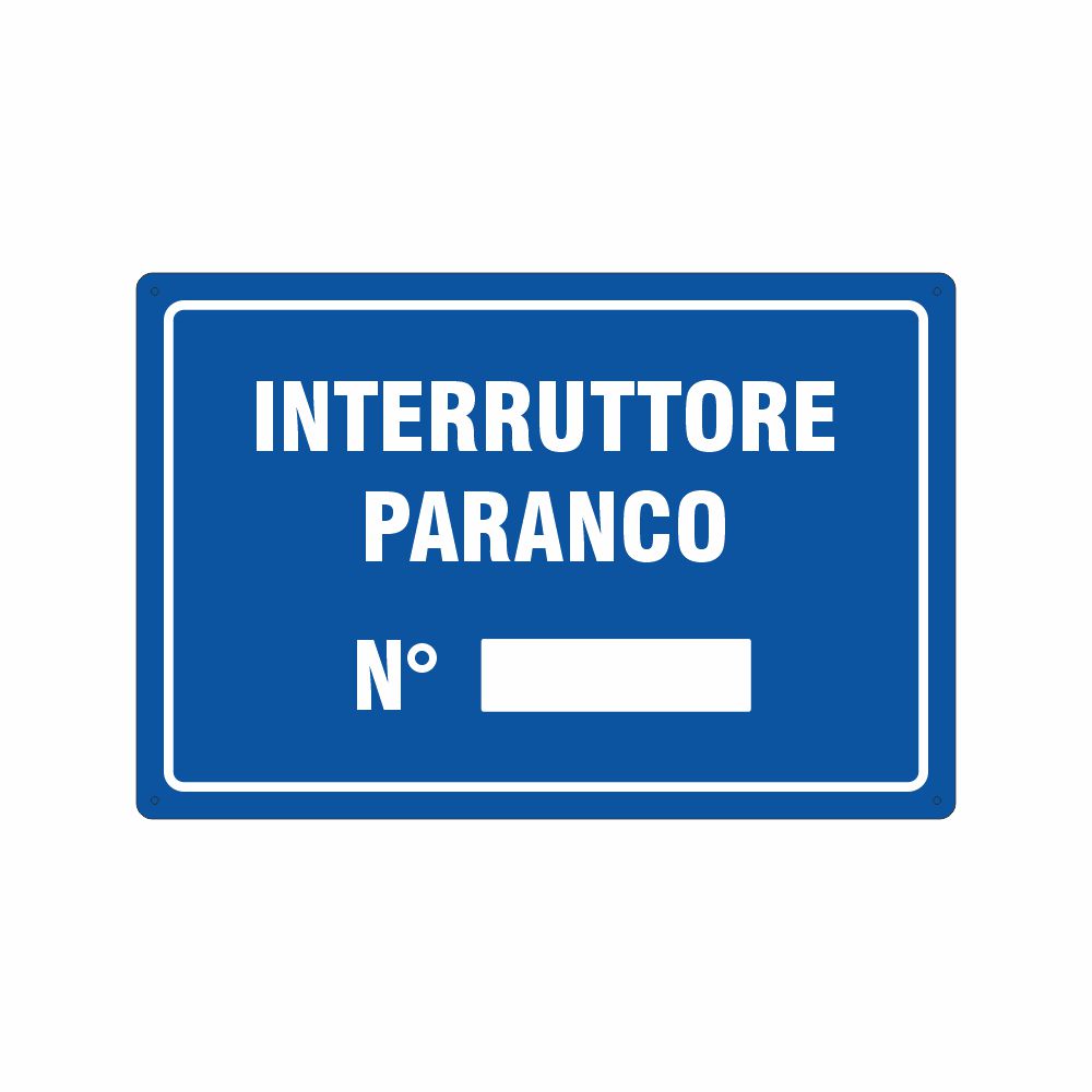 Cartello in alluminio preverniciato blu spessore 0,5 mm, stampa serigrafica scritta interruttore gru con spazio per il numero. Formato 200x150 mm. Conforme D.Lgs. 81-08, UNI 7543.