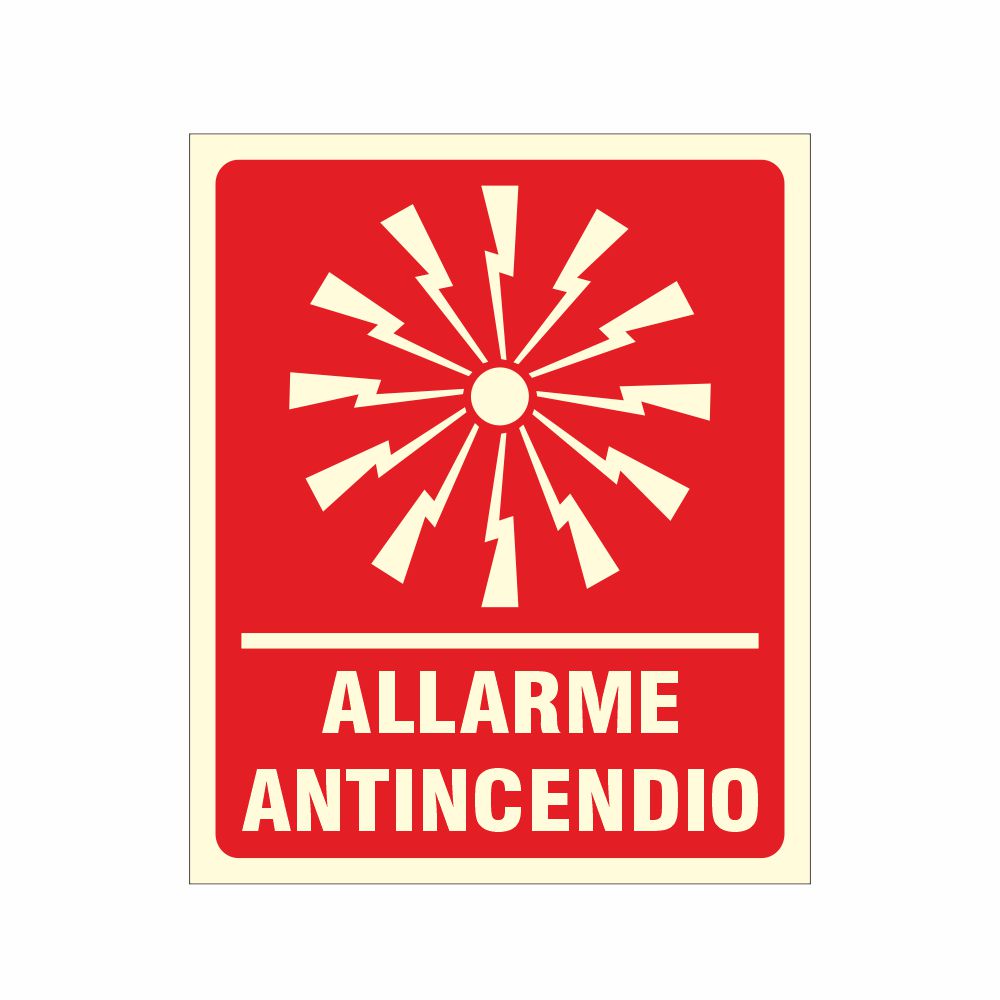 Cartello in alluminio preverniciato bianco spessore 0,5 mm, stampa serigrafica pittogramma e scritta allarme antincendio. dimensione 230x310 mm Conforme D.Lgs. 81-08, UNI 7543. Le misure delle varianti sono espresse in mm.