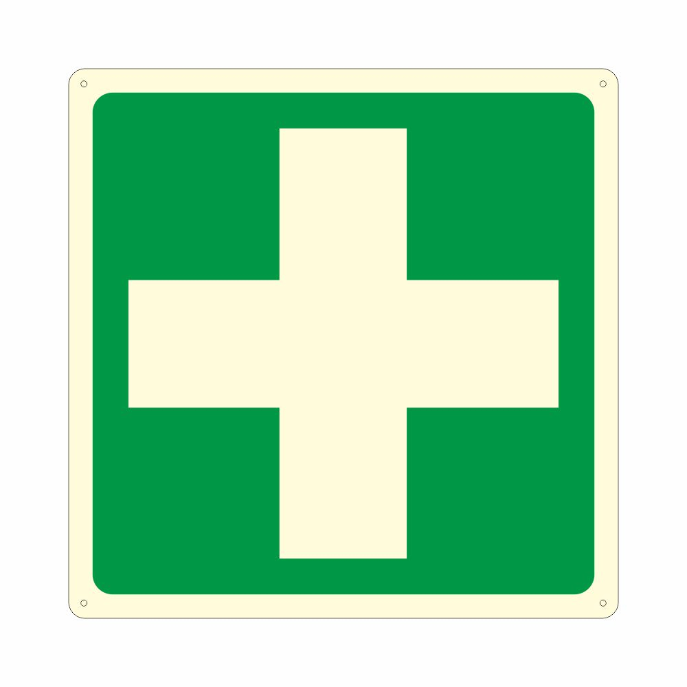 Cartello con simbolo E003 pronto soccorso first aid Cartello in alluminio preverniciato bianco (formati S e F) o verde (formato B) spessore 0,5 mm Pittogramma Croce infermeria - pronto soccorso - first aid Corrispondente pittogramma UNI EN ISO 7010: Safe condition sign E003. First aid Stampa durevole e resistente. Angoli arrotondati. Imballo in nylon Disponibile in tre formati: S con dimensione 160x160 mm; F con dimensione 230x230 mm; B con dimensione 333x333 mm Distanza di visibilità: Formato S 6 metri; Formato F 9 metri; Formato B 15 metri Conforme D.Lgs. 81-08, UNI 7543 e UNI EN ISO 7010. Utilizzo: il cartello segnala la posizione dell'equipaggiamento di primo soccorso o della cassetta di pronto soccorso per facilitare gli addetti di primo soccorso. Va applicato in prossimità degli equipaggimanti, delle attrezzature o della cassetta di pronto soccorso. Metodo di adesione consigliato: collante siliconico su muro o su superficie liscia e piana