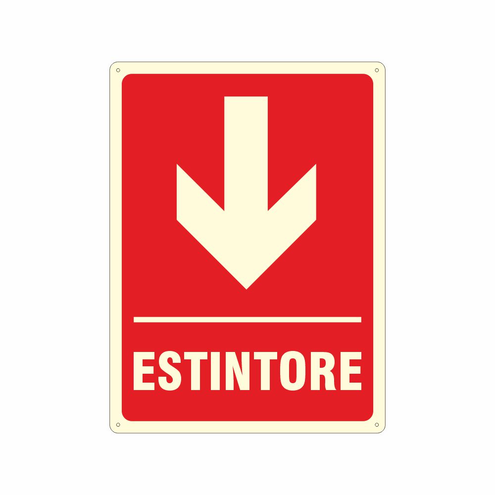 Cartello in alluminio preverniciato spessore 0,5 mm. stampa serigrafica pittogramma e scritta estintore conforme UNI EN ISO 7010 con laminazione luminescente oppure Decorazione in pvc con base luminescente certficata DIN 67510 parte 1. Conforme D.Lgs. 81-08, UNI 7543, UNI EN ISO 7010.