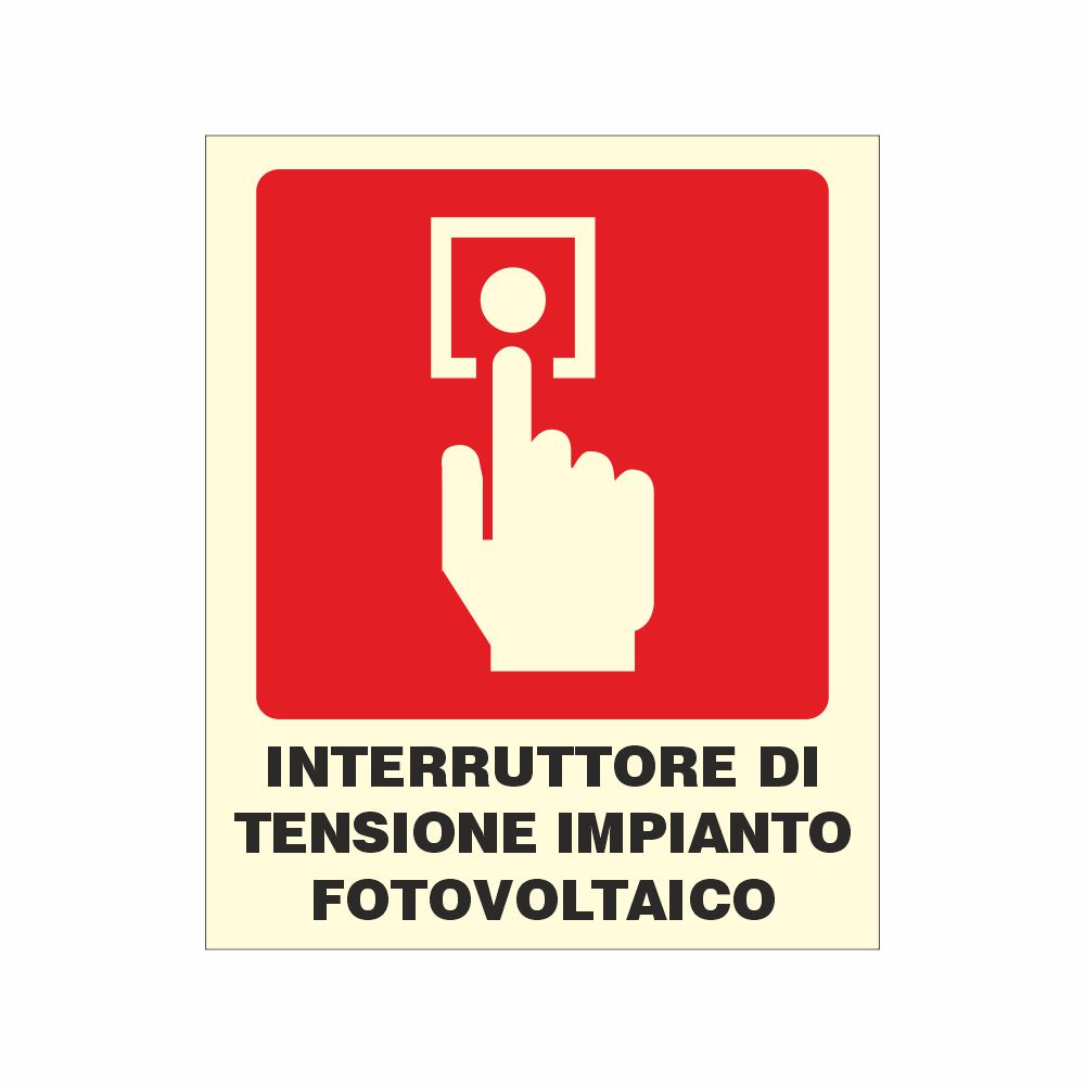 stampa serigrafica pittogramma e scritta interruttore di tensione impianto fotovoltaico, con laminazione luminescente oppure Decorazione in pvc con base luminescente certificata DIN 67510 parte 1.