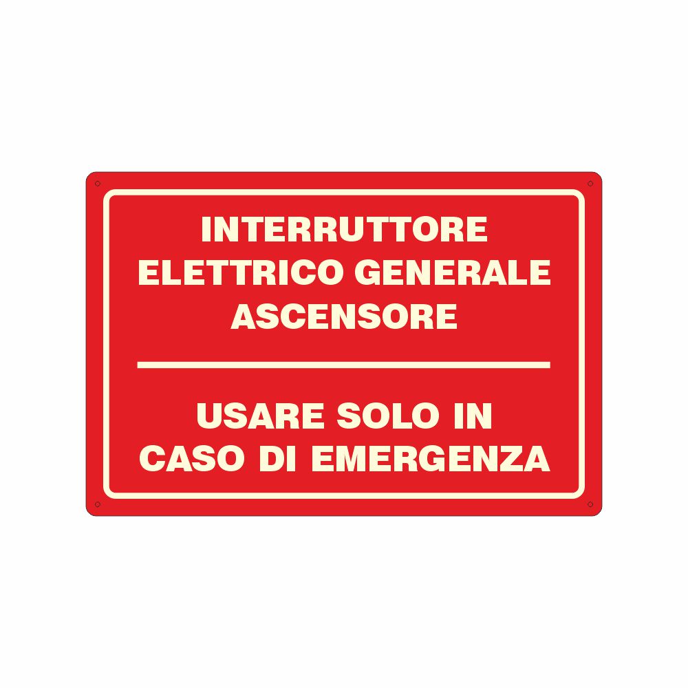 stampa serigrafica scritta interruttore elettrico generale ascensore - usare solo in caso d'emergenza, con laminazione luminescente.