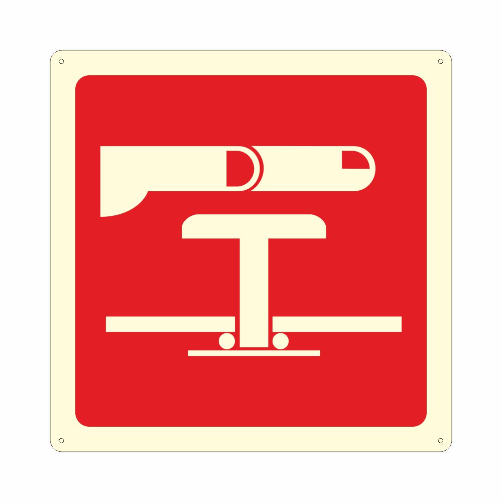 Cartello in alluminio preverniciato spessore 0,5 mm. stampa serigrafica pittogramma e scritta arresto d'emergenza con laminazione luminescente oppure Decorazione in pvc con base luminescente certficata DIN 67510 parte 1. Conforme D.Lgs. 81-08, UNI 7543.