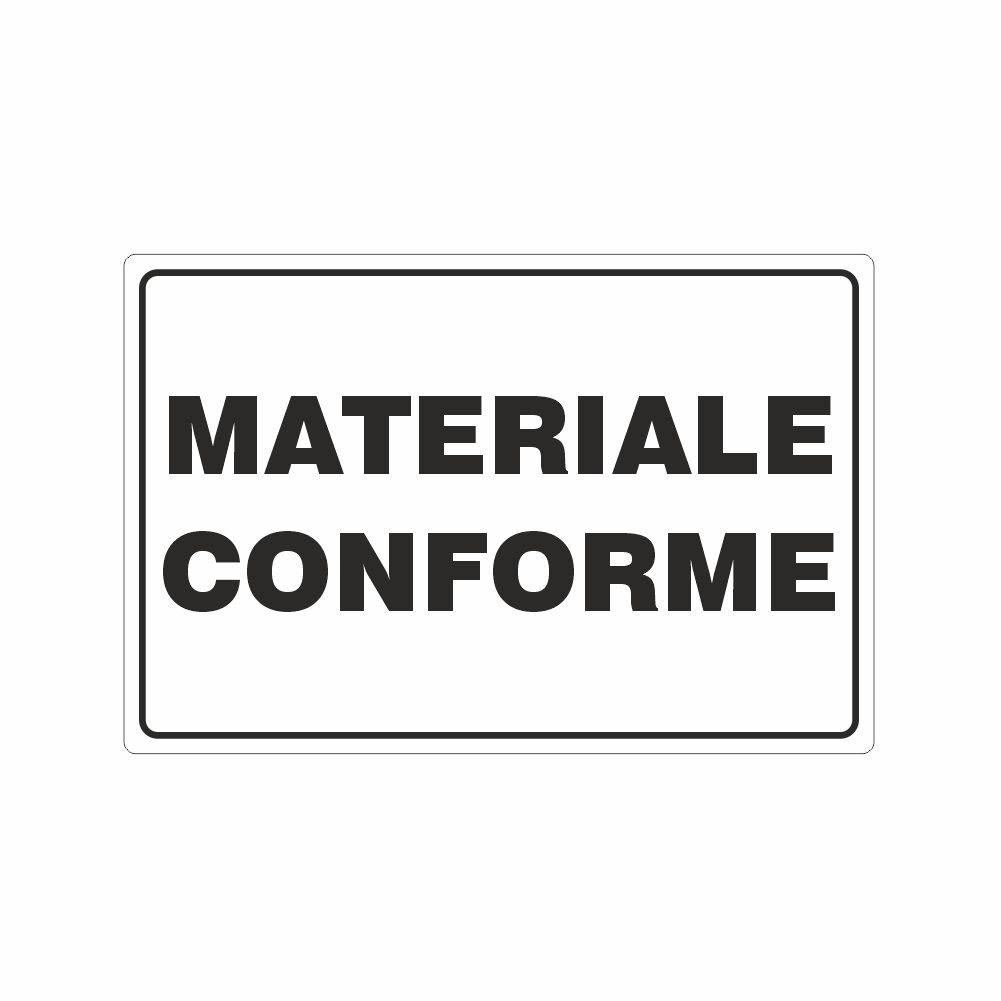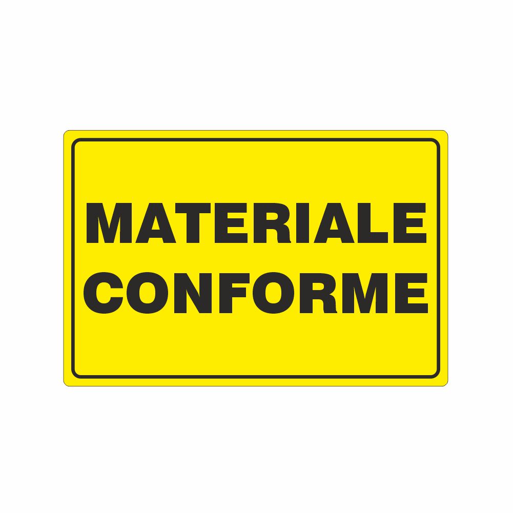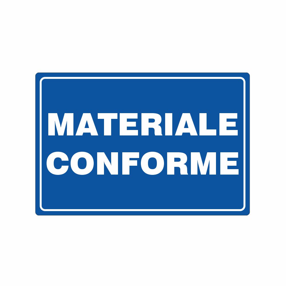 Cartello in alluminio preverniciato spessore 0,5 mm, decorazione in pvc scritta materiale non conforme. Possibilità di scelta del colore della base e della scritta. Conforme D.Lgs. 81-08, UNI 7543.